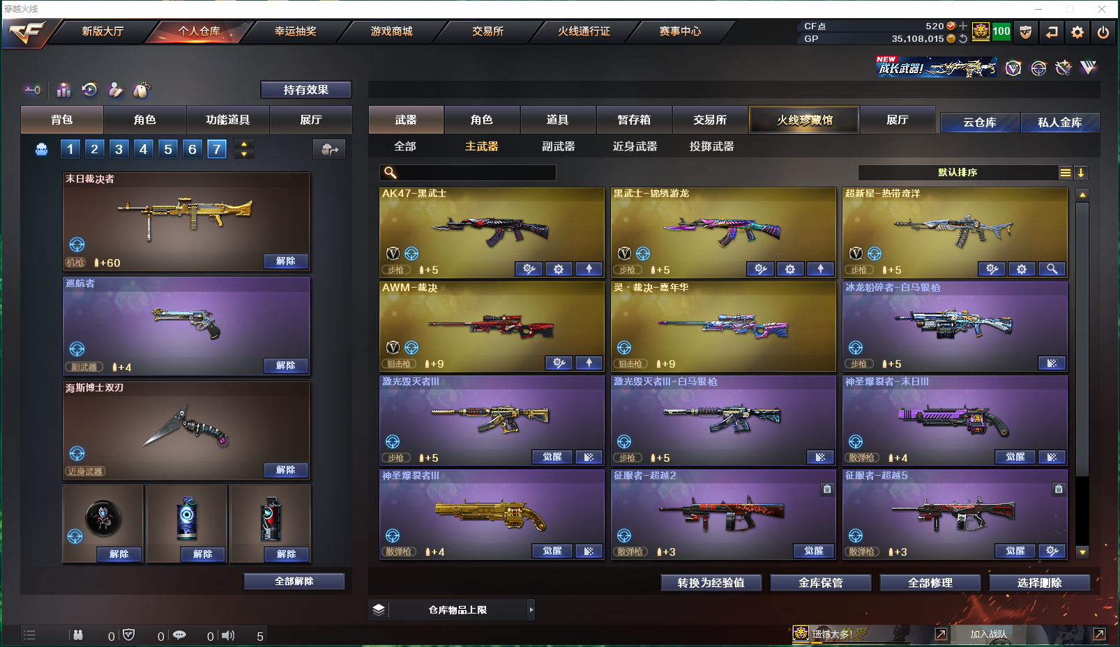 【皮肤】:超新星-深海萌鲨皮肤、金色蔷薇-热带奇洋皮肤、屠龙-星火燎原皮肤、雷神-机甲刑天皮肤、屠龙-小叮当皮肤、龙啸-蛇姬皮肤、炼狱-夏佐皮肤、炼狱-电子连击皮肤、死神-机甲核心皮肤、火麒麟-百城、雷神-宇航兔皮肤、毁灭-神秘黑洞皮肤、黑骑士-破界皮肤、毁灭-百城浙江皮肤、炼狱-玩具枪皮肤、死神-秘银、Barrett-金色蔷薇-蛇姬皮肤、火麒麟-雷神、黑龙-暗月、雷神-化蛇皮肤、AK47老兵传说皮肤、毁灭-黑大圣皮肤、火麒麟-AG战队皮肤、火麒麟-平天大圣、M4A1-千变-孔明皮肤、火麒麟-CFSTAR、修罗-CFSTAR