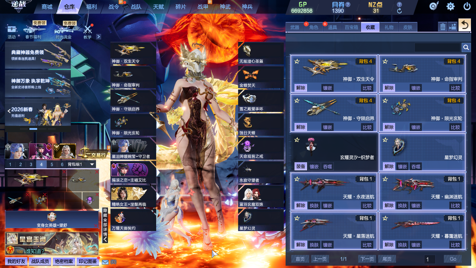 星寰套皮肤(寂定破虚-凤弦流火、天罡灵宝-劫焰离歌、二象归真-焚音剑决、玄策天机-神火煌镜、瑶光仙灵-云萝梦女)