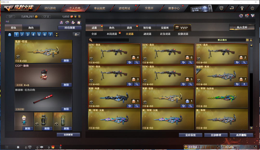 挑战型武器:黑骑士*2+黑骑士-海王*3 冰龙粉碎者-白马银枪满级 机甲撕裂者满级 KAC-圣炎切割者满级 VEPR-12-金魔满级 激光毁灭者满级*2 激光毁灭者-白马银枪*3 神圣暴裂者满级*2 巨龙咆哮满级 阐释者满级。