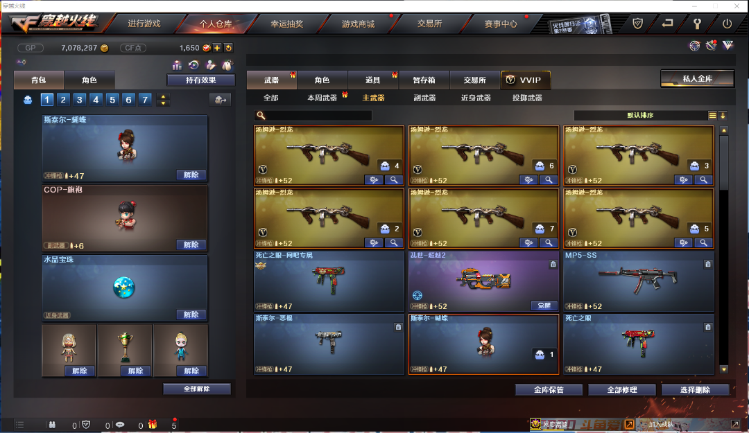 武器:六盘龙 六烈龙 加特林-炼狱 炼狱-悦蓝 斯泰尔-蝴蝶 双面神 Barrett-朱雀 AWM-裁决 手斧镜 迷你生化手雷