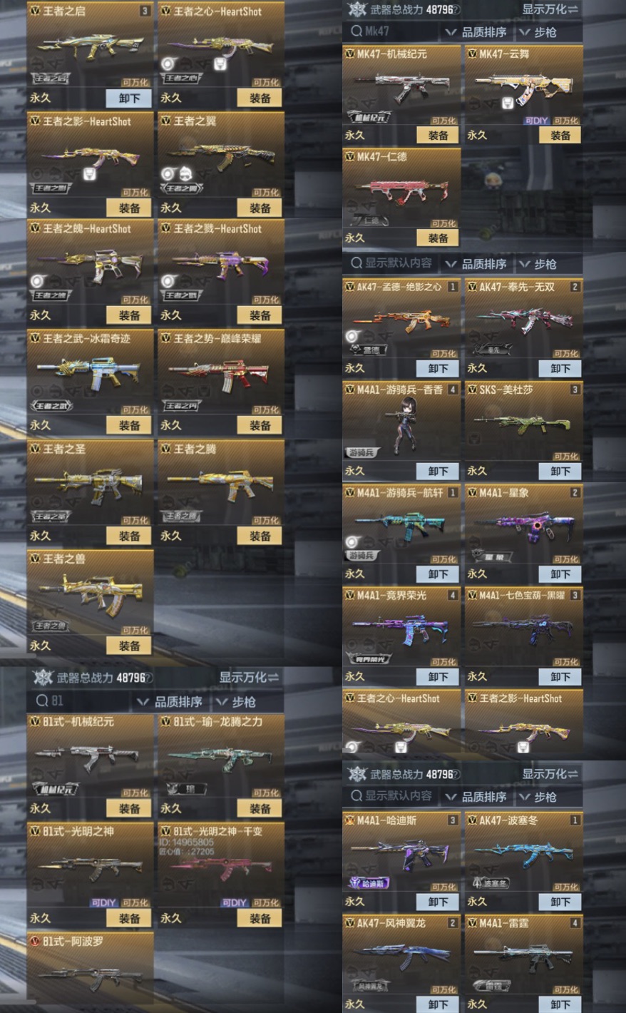 亮点:【全女团皮,全女团角色,全81,全王者M4,7把英雄Cop,7把王锋带皮,7把英雄MK23,7把哈迪斯,7把王烈,3赛事皮肤,王势巅峰皮,充值快10w应有尽有】【王势全皮,冠军Ep,巅峰皮,冰霜】
