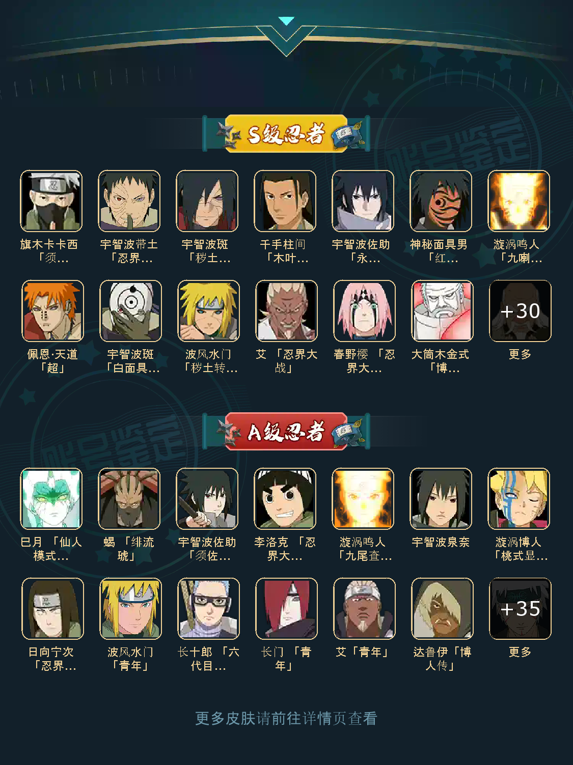 VIP11级;S忍41个;A忍42个,通灵兽20个,S忍:猿飞日斩大蛇丸普通纲手九喇嘛鸣人永恒万花筒佐助忍战樱仙人自来也百豪纲手普通自来也豪杰自来也死门凯波风水门秽土水门秽土猿飞千手扉间秽土扉间千手柱间秽土柱间木叶创立柱...