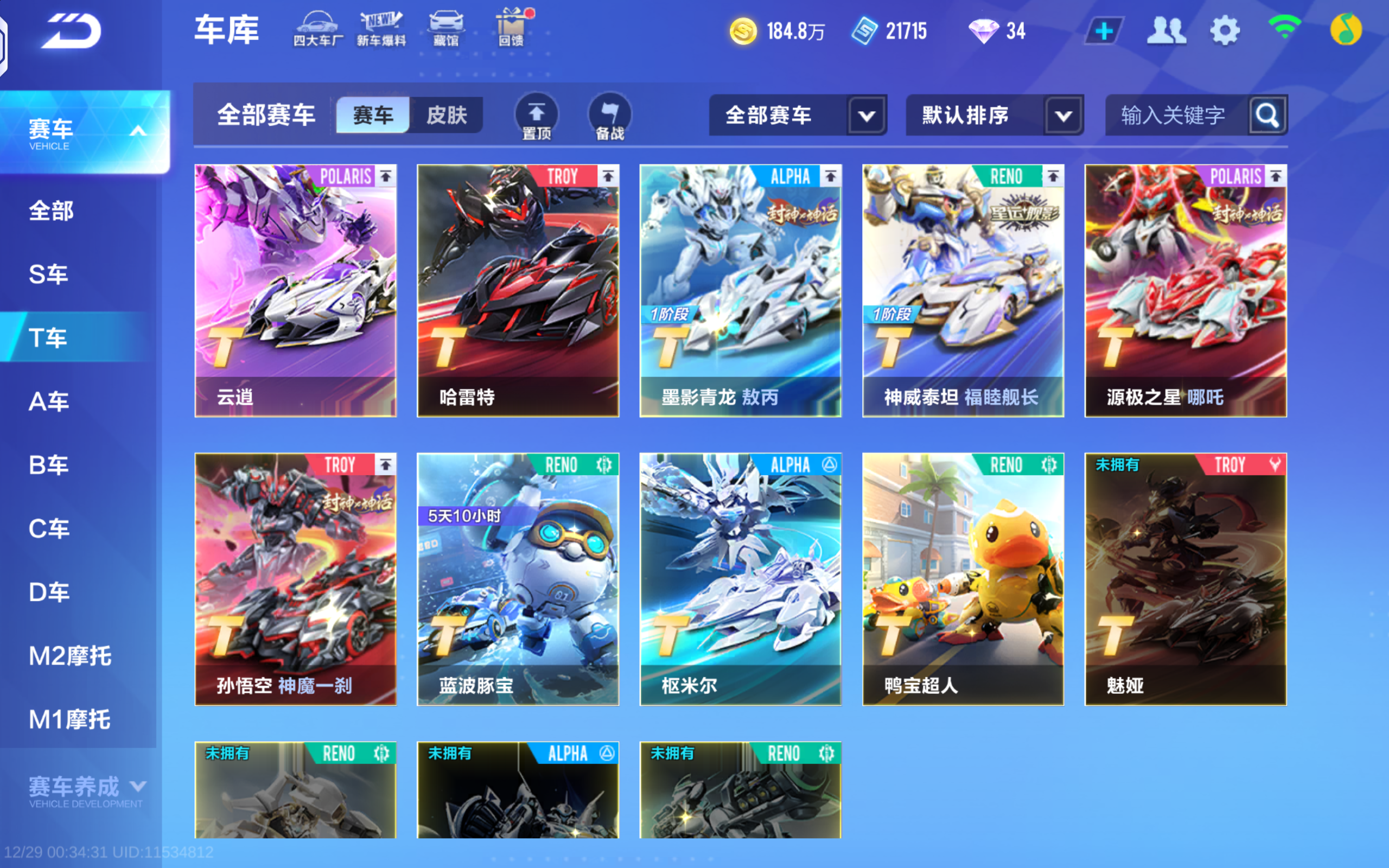 【安卓】 T车:哈雷特,孙悟空,源极之心,云霄,枢米尔。A车:月影,幻星,冰魄…等。