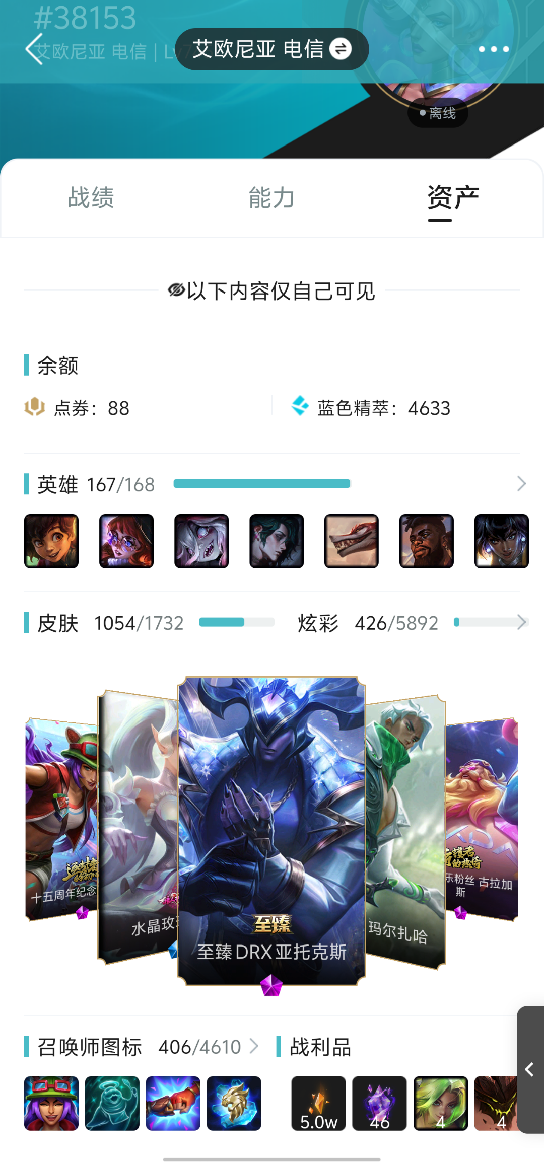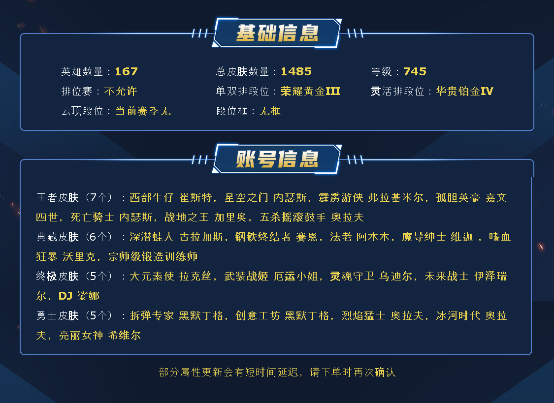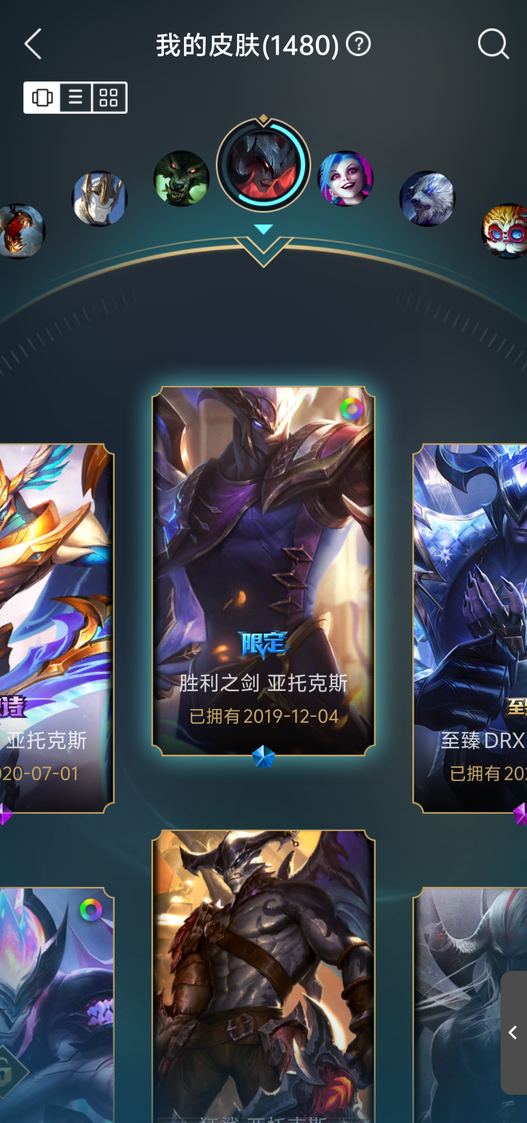 1480皮,龙瞎,多至臻,5终极,47神话,200限定,99传说
