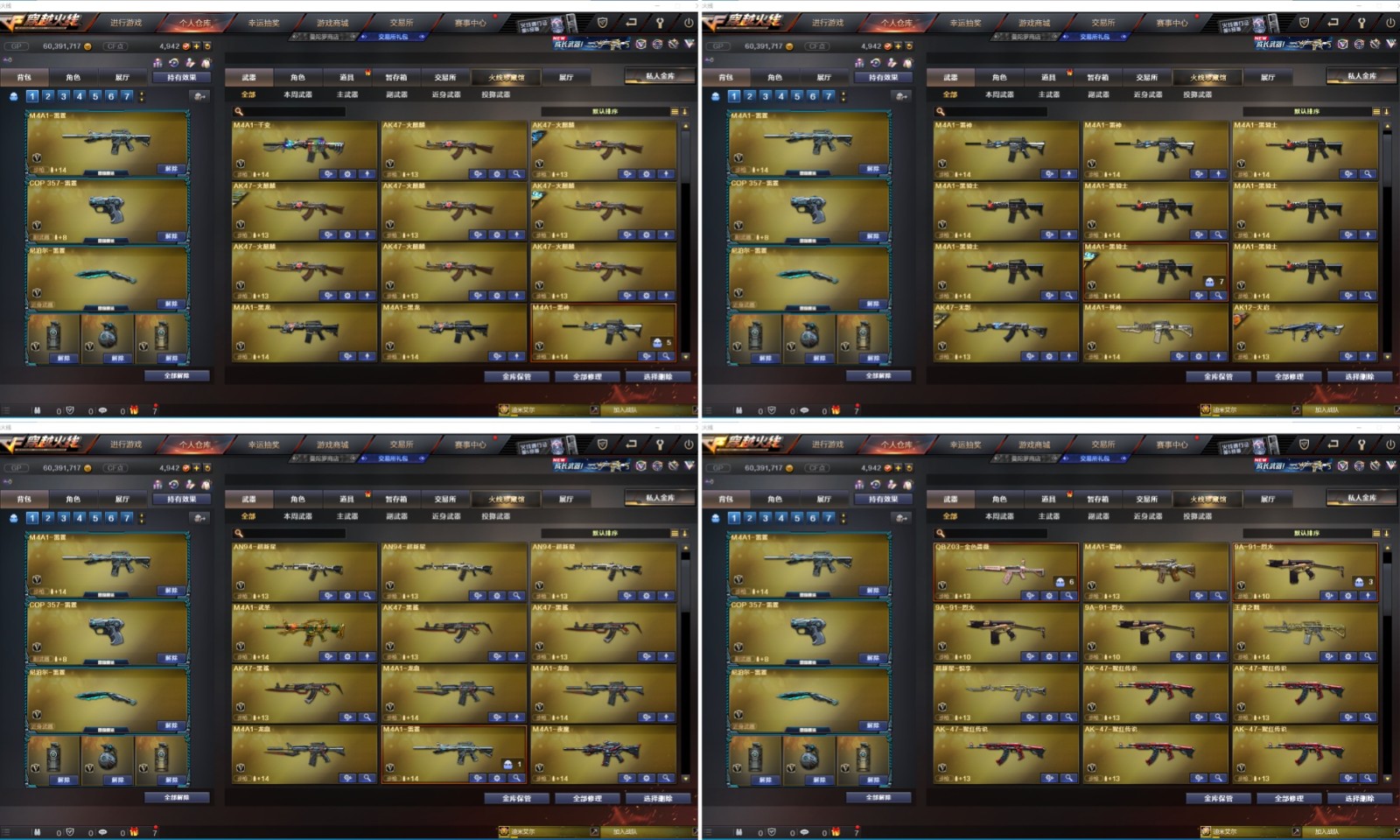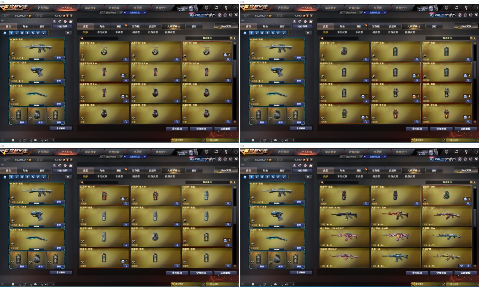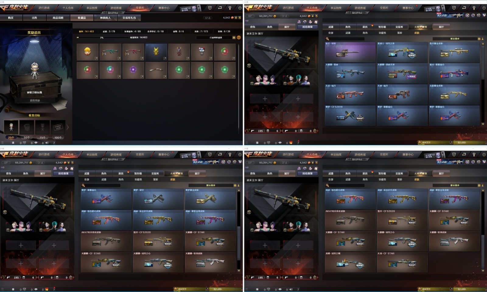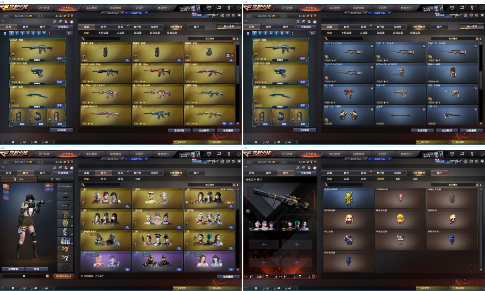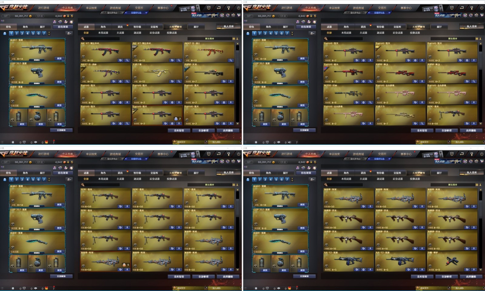 【其他重要武器】炫金天龙/炫金毁灭/炫金修罗/M4A1-仙界-黑骑士/9A91-赤血龙魂(10)/HK417-红龙/AK47-破空冰刃/M4A1-破空冰刃/AK47-青龙/AK12-幽灵/M14EBR-赤血龙魂(2)/M4A1-秘银赤龙(2)/AK47-轮回/火麒麟-桃园结义/HK417-赤血龙魂(5)/M4A1-Guitar 炫彩/AK47-大帝林肯/AK-47-二次元/AWM-深海猎手(4)/AWM-卡通/AWM-红色悦动/EVO III-赤血龙魂(3)/斯太尔-能量核心/征服者-地狱之火 [Lv Max]/征服者-毁灭之王 [Lv Max]/沙鹰-青龙/沙鹰-万圣节2018(2)/凤凰之灵(2)/沙鹰-雷蛇/愤怒公牛左轮-枪王排位(2)/新USP-怒火大圣/幻影Anaconda-枪王排位/沙鹰-枪王排位/USP-黑大圣/修罗-摸金校尉/军用铁锹-飞龙在天/斩魔刀-怒火大圣/蝴蝶刀-枪王排位/猫猫手套(2)/收割者-枪王排位/军用手斧-能量核心/闪光弹-枪王排位/手雷-能量核心(2)/红色诅咒娃娃手雷