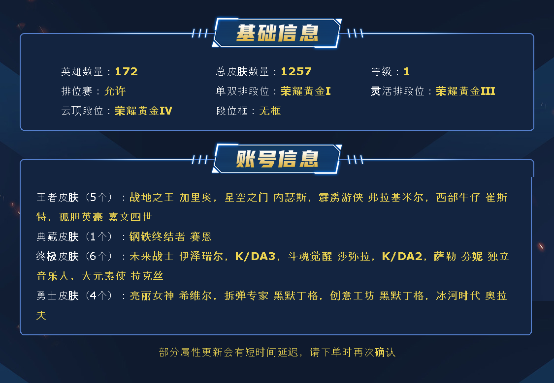 ~~喜欢记得收藏~~可排位~~1200皮全英雄丨90神话/至臻/海克斯丨KDA套丨泳池佐伊丨创星璐璐丨卧虎藏龙丨嫦娥皎月丨勇敢的心丨觅心悠米丨玉剑剑圣丨律动格温丨幻灵金克斯丨神龙尊者李青丨至高天奎桑提丨星守狐狸伊泽丨灵魂莲华狐狸锤石亚索莉莉娅~~租之前尽量查一下游戏ID,确保段位是您需要的,避免浪费您的时间~~请勿挂机逃跑故意送人头,谢谢合作,谢谢~~