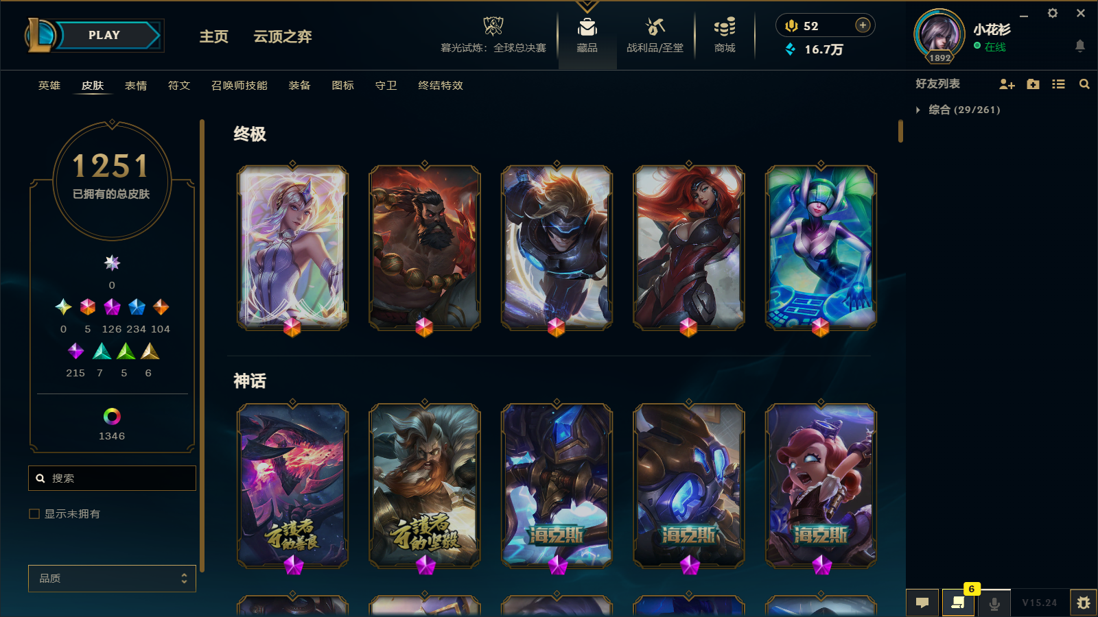 女号/1250原皮/124神话/鼠年套/EDG套/IG套龙瞎/玉剑男女刀全炫/90至臻/43臻彩/恐惧及周年诺手/摄魂薇恩/穿星赵信/斩星剑圣/冰雪节奶妈老鼠/银龙泰隆/奶妈琴女光辉皮肤很多
