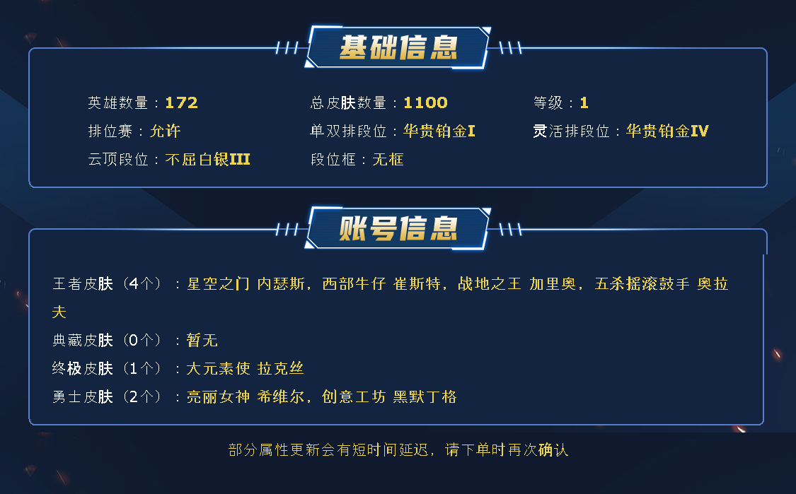 ~~喜欢记得收藏~~可排位~~1026皮全英雄丨510原皮516炫彩丨90神话/至臻/海克斯丨电玩女警丨嫦娥皎月丨替父从军丨女帝卡特丨律动格温丨至高天奎桑提丨幽梦玫瑰蜘蛛丨泳池女警佐伊丨水晶玫瑰阿克尚丨神龙尊者李青艾希丨玉剑男刀女刀剑姬丨KDA狐狸卡莎寡妇丨星守佐伊狐狸风女ez丨莲华锤石莉莉娅厄斐琉斯~~租之前尽量查一下游戏ID,确保段位是您需要的,避免浪费您的时间~~请勿挂机逃跑故意送人头,谢谢合作,谢谢~~