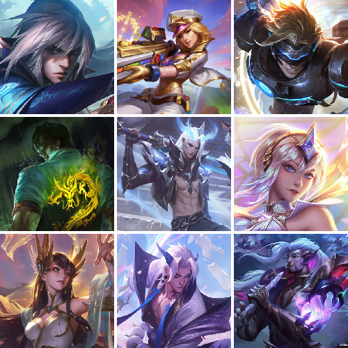 【重要皮肤】青花瓷丽桑卓至臻 海之歌萨勒芬妮至臻 青花瓷拉克丝至臻 神凰行者烈羽焰凰霞至臻 女帝黛安娜至臻 魔女乐芙兰至臻 奥术师佐伊至臻 真实伤害亚索至臻 灵魂莲华提莫至臻 灵能特工伊泽瑞尔至臻 福牛守护者菲奥娜至臻 源计划逆流塞拉斯至臻 源计划阴劫至臻 神龙尊者炎龙瑟提至臻 黑夜使者凯隐至臻 神龙尊者均衡之龙沃利贝尔至臻 征服者贾克斯至臻 飞升战神潘森至臻 KDA二代卡莎至臻 KDA一代卡莎至臻 KDA卡莎2022至臻 电玩女神凯特琳至臻 未来战士锤石至臻 未来战士锤石2022至臻 灰烬骑士派克 海克斯科技安妮 海克斯科技雷克顿 海克斯科技克格莫 海克斯科技吉格斯 海克斯科技拉莫斯 海克斯科技崔丝塔娜 暗星科加斯 恐惧新星德莱厄斯 摄魂使者薇恩 胜利女神娑娜 胜利之王泰达米尔 胜利巨口克格莫 哥特萝莉安妮 舞会公主安妮 创星之灵璐璐 生化领主泰达米尔 勇敢的心德莱厄斯 电玩女神阿狸 星之守护者伊泽瑞尔 玉剑传说无影 玉剑传说舞剑仙 神凰行者烈羽焰凰霞 龙的传人李青 替父从军花木兰 神龙烈焰金克丝 紫金罗刹莫甘娜 广寒仙子嫦娥 张辽文远 金猪烈焰瑟庄妮 烈焰美人薇恩 征服者贾克斯 王国机神青龙德莱文 王国机神苍狼瑟提 王国机神玄武盖伦 福牛守护者厄斐琉斯 胜利女神瑟庄妮 胜利女神奥莉安娜 胜利枪神卢锡安 胜利之剑亚托克斯 穿心之剑菲奥娜 觅心游侠卢锡安 觅心魔灵奥莉安娜 觅心萝莉金克丝 冬境仙灵索拉卡 冬季仙境奥莉安娜 雪球也能爆炸吉格斯 圣诞老人德莱文 冬季仙境卡尔玛 持胡萝卜的雪人易 狂心冰王图奇 魄罗骑士瑟庄妮 夺命美人卡特琳娜 平安夜女神娑娜 圣诞糖果棒厄运小姐 魅惑女巫迦娜 魅惑女巫崔丝塔娜 魅惑女巫奈德丽 大魔法锅布里茨 死亡誓约劫 死亡誓约维克托 勇敢的心德莱厄斯 海之歌泽丽 泳池派对凯特琳 泳池派对菲奥娜 泳池派对格雷福斯 泳池派对蕾欧娜 泳池派对雷克顿 泳池派对瑟提 电玩战魂赫卡里姆 御星魔矢艾希 克格汪 制胜金靴李青 EDG厄斐琉斯 EDG佛耶戈 EDG格雷福斯 EDG悠米 EDG佐伊 DWG凯南 DWG奈德丽 FPX锤石 FPX薇恩 FPX李青 FPX普朗克 FPX墨菲特 iG卡蜜尔 SSG霞 SSG伊泽瑞尔 SKTT1扎克 SKTT1烬 SKTT1辛德拉 SKTT1娜美 SKTT1奥拉夫 SKTT1阿利斯塔 SKTT1瑞兹 SKTT1阿兹尔 SKTT1伊莉丝 SKTT1雷克顿 SSW泰隆 SSW图奇 SSW辛吉德 SKTT1贾克斯 SKTT1劫 SKTT1婕拉 SKTT1李青 SKTT1薇恩 暗杀星奥莉安娜 暗杀星蒙多 暗杀星努努和威朗普 暗杀星伊泽瑞尔 暗杀星慎 Fnatic迦娜 Fnatic库奇 Fnatic嘉文四世 Fnatic卡尔萨斯 冰雪节格雷福斯 冰雪兽纳尔 防暴机器人布里茨 防暴士兵格雷福斯 防暴士兵辛吉德 防暴天使凯尔 钢铁之翼艾尼维亚 冠军典狱长锤石 冠军掠夺者卡兹克 冠军之血希瓦娜 冠军之隐劫 冠军之志瑞兹 春晖山神墨菲特 鬼影重重魔腾 海贼瑞兹 红桃杰克崔斯特 胡桃夹子萨科 警用试作体K9内瑟斯 蓝色忧郁崔斯特 蒙多蒙多 密林猎手提莫 南瓜头费德提克 女猎手希维尔 圣诞精灵崔丝塔娜 圣诞开心鬼提莫 圣诞狂欢基兰 圣诞狂欢努努和威朗普 圣诞玩偶波比 圣诞驯鹿克格莫 糖果使徒费德提克 外星装甲库奇 卧虎藏龙贾克斯 无头骑士赫卡里姆 喜庆之树茂凯 邪恶圣诞老人维迦 幸福女神乐芙兰 雪默丁格 雪球也能爆炸吉格斯 雪装奈德丽 野兽猎人德莱文 野兽猎人瑟庄妮 野兽猎人泰达米尔 勇者阿狸 勇者奈德丽 征服者卡尔玛 暗影沃里克 诺斯费拉图弗拉基米尔 阿木木主人不要我了 2021全球总决赛嘉文四世 波比的巧克力工坊 都铎王朝图奇 十五周年纪念希维尔 十周年纪念安妮 源代码乐芙兰 神凰行者瑞羽圣凰艾尼维亚 胜利凤凰艾尼维亚 大元素使拉克丝 灵魂守卫乌迪尔 未来战士伊泽瑞尔 绝息圣堂洛