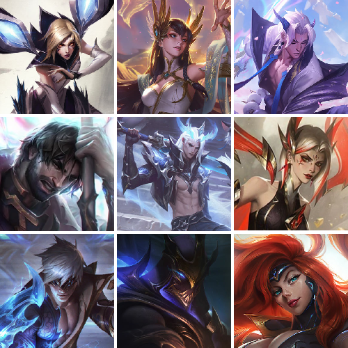 【重要皮肤】北极星钢影卡蜜尔至臻 魔女阿卡丽至臻 绝息圣堂厄运小姐至臻 灵魂莲华易至臻 西部魔影猎天使恶魔泰隆至臻 青花瓷拉克丝至臻 神凰行者烈羽焰凰霞至臻 女帝黛安娜至臻 神龙尊者炎龙瑟提至臻 神龙尊者均衡之龙沃利贝尔至臻 焰执事布兰德至臻 KDA二代卡莎至臻 KDA一代卡莎至臻 烈焰美人薇恩至臻 绒毛菲兹至臻 腥红之月亚托克斯至臻 殿堂传奇乐芙兰 水晶巫灵泽拉斯 灰烬骑士莫德凯撒 灰烬骑士派克 海克斯科技雷克顿 海克斯科技嘉文四世 海克斯科技阿利斯塔 海克斯科技崔丝塔娜 水晶圣骑蕾欧娜 零之枪骑赫卡里姆 摄魂使者薇恩 胜利剑圣易 胜利之王泰达米尔 创星之灵璐璐 勇敢的心德莱厄斯 电玩女神厄运小姐 电玩勇者锐雯 星之守护者伊泽瑞尔 玉剑传说舞剑仙 玉剑传说神机花火 玉剑传说无劫 玉剑传说舞龙卫 玉剑传说翼剑仙 剪纸仙灵艾瑞莉娅 剪纸仙灵加里奥 龙腾虎跃瑟提 替父从军花木兰 碧玉之牙卡西奥佩娅 定海神珍孙悟空 玉净夜叉凯特琳 广寒仙子嫦娥 张辽文远 司马懿仲达 烈焰美人薇恩 福牛守护者德莱厄斯 福牛守护者阿利斯塔 福牛守护者菲奥娜 胜利女神瑟庄妮 胜利机器人布里茨 胜利女神奥莉安娜 胜利枪神卢锡安 胜利之剑亚托克斯 水晶玫瑰阿克尚 甜心宝贝安妮 觅心女王艾希 觅心萝莉金克丝 觅心猎手薇恩 幽梦玫瑰辛德拉 幽梦玫瑰泰隆 双城之战2幸存者杰斯 北极星守护者卢锡安 圣诞捣蛋鬼金克丝 魄罗骑士瑟庄妮 魅惑女巫迦娜 魅惑女巫厄运小姐 魅惑女巫奈德丽 灵魂收割者索拉卡 勇敢的心德莱厄斯 泳池派对嘉文四世 泳池派对塔莉垭 泳池派对菲奥娜 泳池派对格雷福斯 电玩战魂赫卡里姆 御星魔矢艾希 送披萨的小姐姐希维尔 鸡里奥 克格汪 DRX亚托克斯 DRX凯特琳 DRX艾希 EDG佛耶戈 DWG烬 iG卡莎 iG菲奥娜 SKTT1辛德拉 SKTT1卡莉丝塔 SKTT1瑞兹 SKTT1伊莉丝 SKTT1雷克顿 SSW雷恩加尔 SSW图奇 SSW辛吉德 SKTT1劫 SKTT1婕拉 暗杀星蒙多 暗杀星慎 Fnatic古拉加斯 Fnatic嘉文四世 Fnatic卡尔萨斯 冰雪节玛尔扎哈 冰雪节辛吉德 防暴士兵格雷福斯 防暴士兵辛吉德 防暴天使凯尔 冠军典狱长锤石 冠军之矛卡莉丝塔 冠军之刃锐雯 冠军之刃锐雯2016 冠军之血希瓦娜 春晖海神卡兹克 春晖山神墨菲特 春晖神女艾希 春晖神女奇亚娜 鬼影森森茂凯 鬼影重重魔腾 胡桃夹子萨科 惊悚派对阿木木 密林猎手提莫 破空枪骑孙悟空 圣诞精灵崔丝塔娜 圣诞开心鬼提莫 圣诞狂欢努努和威朗普 圣诞老人古拉加斯 圣诞玩偶波比 圣诞驯鹿克格莫 糖果使徒费德提克 外星装甲库奇 无头骑士赫卡里姆 喜庆之树茂凯 幸福女神乐芙兰 雪默丁格 野兽猎人德莱文 野兽猎人瑟庄妮 勇者阿狸 勇者奈德丽 征服者韦鲁斯 暗影沃里克 魅惑女巫菲奥娜 阿木木主人不要我了 2024全球总决赛佛耶戈 2021全球总决赛嘉文四世 波比的巧克力工坊 地底世界崔斯特 都铎王朝图奇 十五周年纪念希维尔 十周年纪念安妮 源代码乐芙兰 神凰行者瑞羽圣凰艾尼维亚 胜利凤凰艾尼维亚 武装战姬厄运小姐 绝息圣堂洛