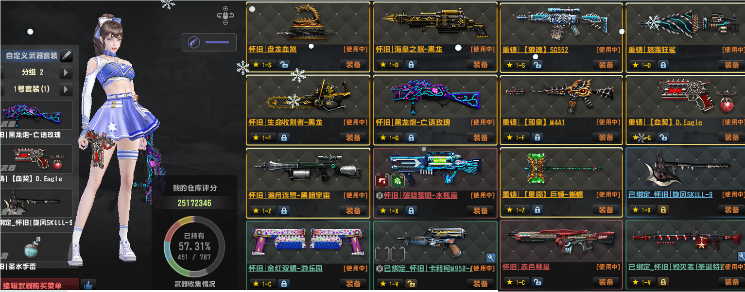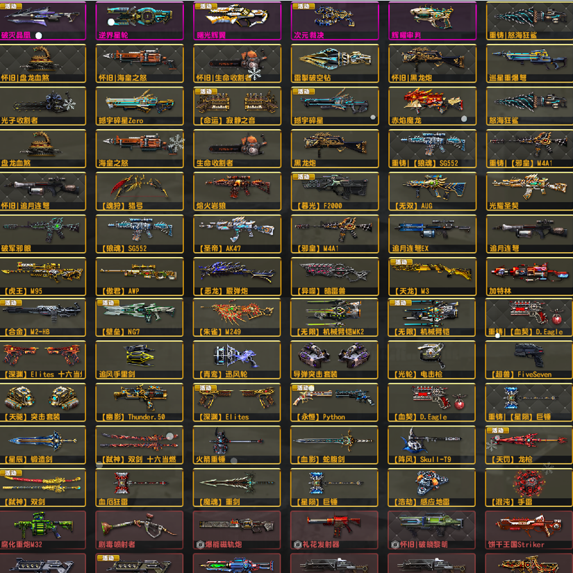 3.更新:期限冰璃寒蟒万钧神威,到1月28号。怀旧三件套金红双蝎黑龙炮斧头重炮光束MK123全套,三把闪电全套闪电AN94和闪电野牛Bizon!(野牛请配合十五用,充能更快)!维京全套!赛季悬赏有第11到21赛季,满强化满配件武器!已去黑雾!