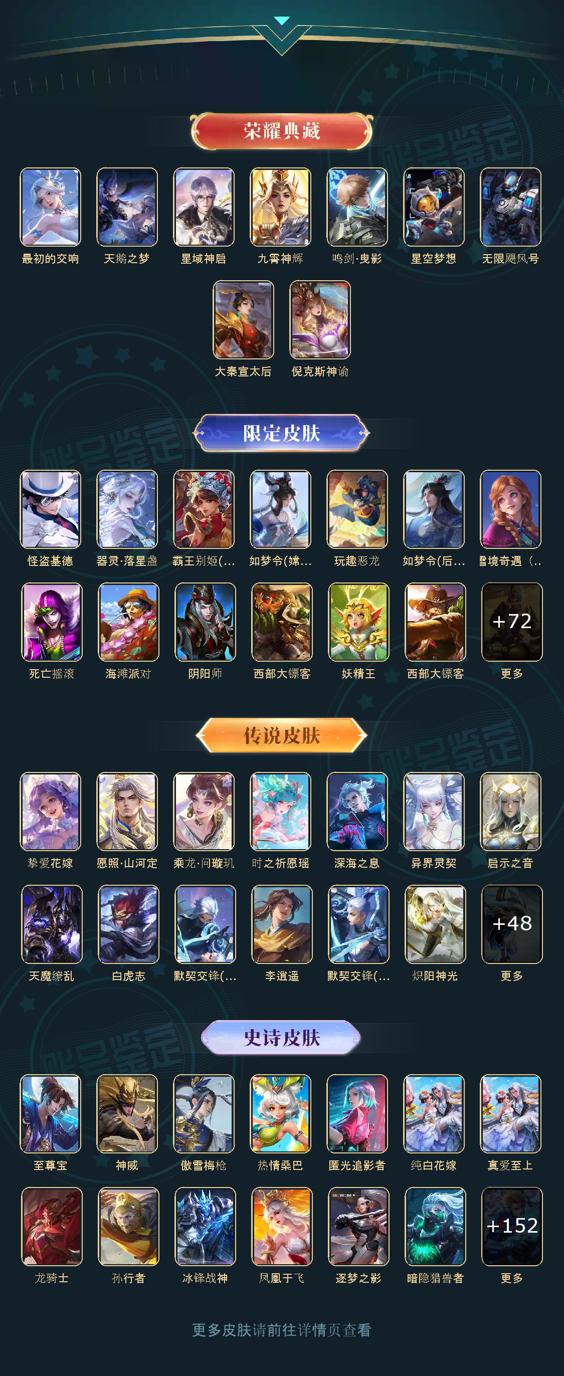 贵族等级V10,英雄数量124,典藏皮肤数8,皮肤数量488,