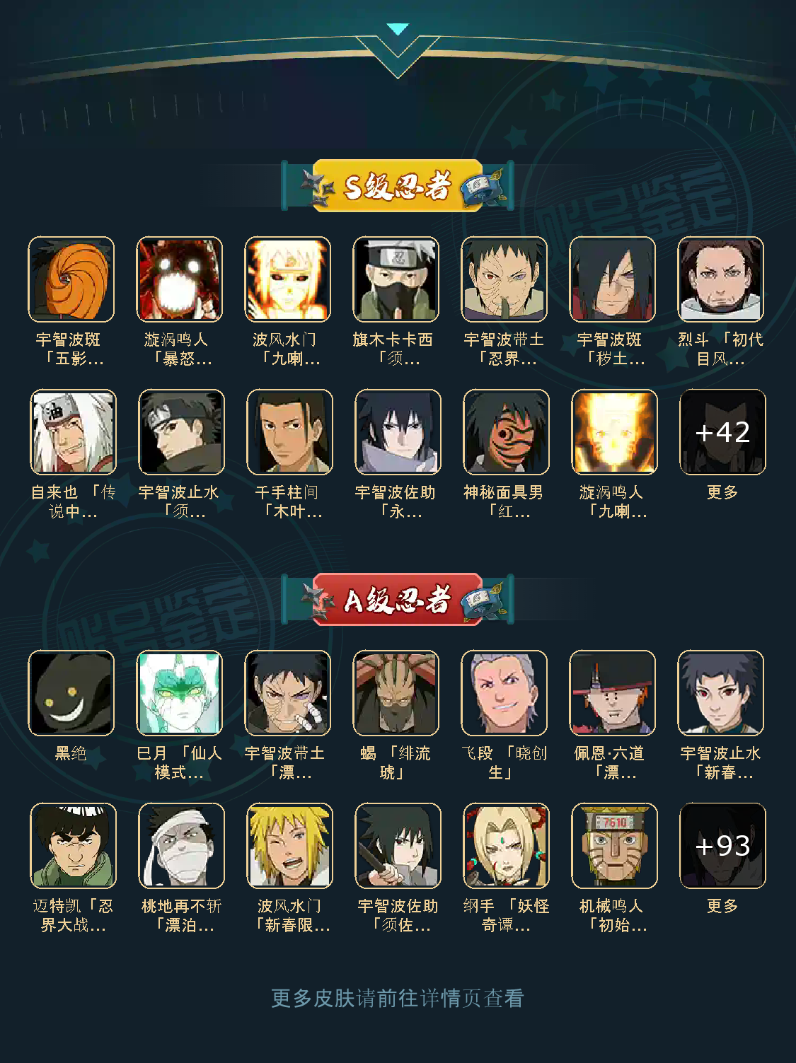 54S 106A 415忍者 宇智波带土「暴怒」/干柿鬼鲛「鲛肌融合」/宇智波佐助「疾风传咒印」/迈特凯「忍界大战」/宇智波带土「忍界大战」/宇智波斑「木叶创立」/佩恩·天道「超」