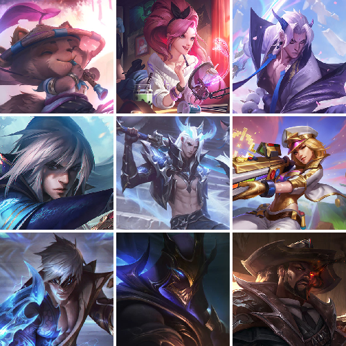 【重要皮肤】星之守护者辛德拉至臻 青花瓷拉克丝至臻 魅惑女巫莫甘娜至臻 女帝黛安娜至臻 战斗学院蕾欧娜至臻 太空律动璐璐至臻 魔女婕拉至臻 魔女乐芙兰至臻 真实伤害赛娜至臻 星之守护者索拉卡至臻 灵魂莲华提莫至臻 灵能特工伊泽瑞尔至臻 福牛守护者菲奥娜至臻 源计划逆流塞拉斯至臻 王国机神玄武盖伦至臻 神龙尊者炎龙瑟提至臻 黑夜使者凯隐至臻 神龙尊者均衡之龙沃利贝尔至臻 飞升战神潘森至臻 KDA二代卡莎至臻 KDA一代卡莎至臻 KDA阿狸至臻 KDA阿狸2022至臻 烈焰美人薇恩至臻 烈焰美人薇恩2022至臻 电玩女神凯特琳至臻 魅惑女巫厄运小姐至臻 魅惑女巫厄运小姐2022至臻 源计划正义艾瑞莉娅至臻 绒毛菲兹至臻 绒毛菲兹2022至臻 腥红之月亚托克斯至臻 腥红之月亚托克斯2022至臻 未来战士锤石至臻 未来战士锤石2022至臻 灰烬骑士派克 海克斯科技安妮 海克斯科技雷克顿 海克斯科技克格莫 海克斯科技斯维因 海克斯科技吉格斯 海克斯科技玛尔扎哈 海克斯科技波比 海克斯科技嘉文四世 海克斯科技阿利斯塔 海克斯科技阿木木 海克斯科技拉莫斯 永恒之森奥恩 暗星科加斯 黎明使者卡尔玛 摄魂使者薇恩 新创战纪希维尔 胜利女神娑娜 胜利之王泰达米尔 胜利巨口克格莫 创星之灵璐璐 荣誉使者玛尔扎哈 养蜂人辛吉德 电玩女神厄运小姐 电玩女神阿狸 玉剑传说无影 玉剑传说神机花火 玉剑传说星仙子 玉剑传说翼剑仙 星之守护者佐伊 银龙裁决泰隆 神龙烈焰金克丝 碧玉之牙卡西奥佩娅 春晖神女拉克丝 你看见过我的熊猫吗安妮 南天之怒沃里克 美猴王孙悟空 定海神珍孙悟空 玉净夜叉凯特琳 广寒仙子嫦娥 虎痴之拳蔚 张辽文远 金猪烈焰瑟庄妮 烈焰美人薇恩 纳财大帝塔姆 神龙之翼库奇 王国机神青龙德莱文 王国机神朱雀蕾欧娜 王国机神苍狼瑟提 王国机神白虎贾克斯 王国机神玄武盖伦 胜利女神瑟庄妮 胜利机器人布里茨 胜利枪神卢锡安 幽梦玫瑰伊莉丝 觅心游侠卢锡安 觅心女王艾希 觅心萝莉金克丝 觅心猫猫悠米 幽梦玫瑰辛德拉 持胡萝卜的雪人易 狂心冰王图奇 魄罗骑士瑟庄妮 夺命美人卡特琳娜 平安夜女神娑娜 魅惑女巫莫甘娜 伯爵卡萨丁 灵魂收割者索拉卡 电玩战魂赫卡里姆 克格汪 EDG厄斐琉斯 EDG佛耶戈 EDG格雷福斯 EDG悠米 EDG佐伊 SSG霞 SSG洛 SSG纳尔 SSG塔莉垭 SSG嘉文四世 SSG伊泽瑞尔 SKTT1娜美 SKTT1雷克顿 SSW泰隆 SSW图奇 SSW辛吉德 SKTT1贾克斯 暗杀星奥莉安娜 Fnatic嘉文四世 冰雪节格雷福斯 冰雪节辛吉德 防暴士兵格雷福斯 防暴士兵辛吉德 冠军典狱长锤石 冠军掠夺者卡兹克 冠军之志瑞兹 胡桃夹子萨科 惊悚派对费德提克 南瓜头费德提克 圣诞精灵崔丝塔娜 圣诞狂欢努努和威朗普 圣诞玩偶波比 圣诞驯鹿克格莫 外星装甲库奇 无头骑士赫卡里姆 喜庆之树茂凯 野兽猎人泰达米尔 勇者阿狸 暗影沃里克 冠军之箭艾希 阿木木主人不要我了 波比的巧克力工坊 地底世界崔斯特 都铎王朝图奇 十周年纪念安妮 神凰行者瑞羽圣凰艾尼维亚 胜利凤凰艾尼维亚 灵魂守卫乌迪尔 KDAALLOUT萨勒芬妮独立音乐人 KDAALLOUT萨勒芬妮明日新星 KDAALLOUT萨勒芬妮超级巨星
