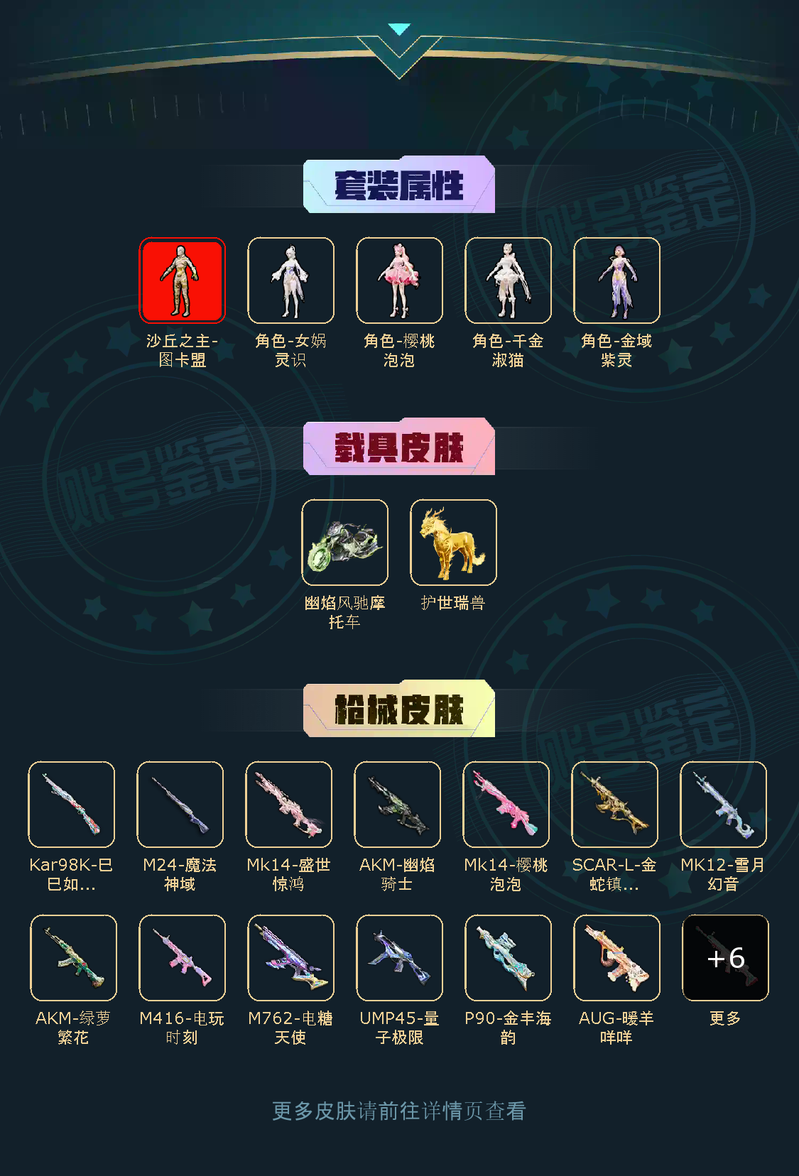 【稀有资产】沙丘之主-图卡盟[1级]/角色-Mark.06/套装-浪漫天命/套装-暗影哥特/套装-龟仙人/套装-晶辉守护/角色-怀庆长公主/角色-琉璃花蕾/套装-纯白跃动/套装-狂沙舞者
