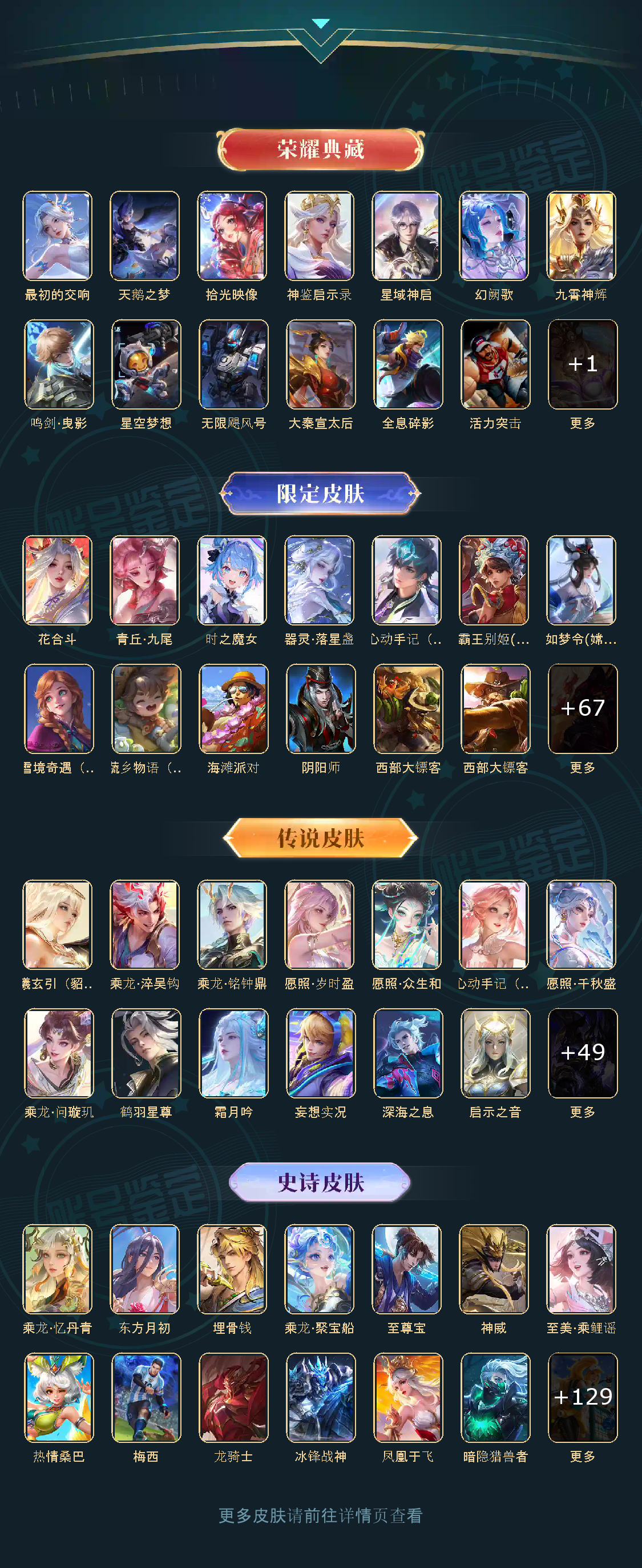 贵族等级V10,英雄数量124,典藏皮肤数13,皮肤数量477,