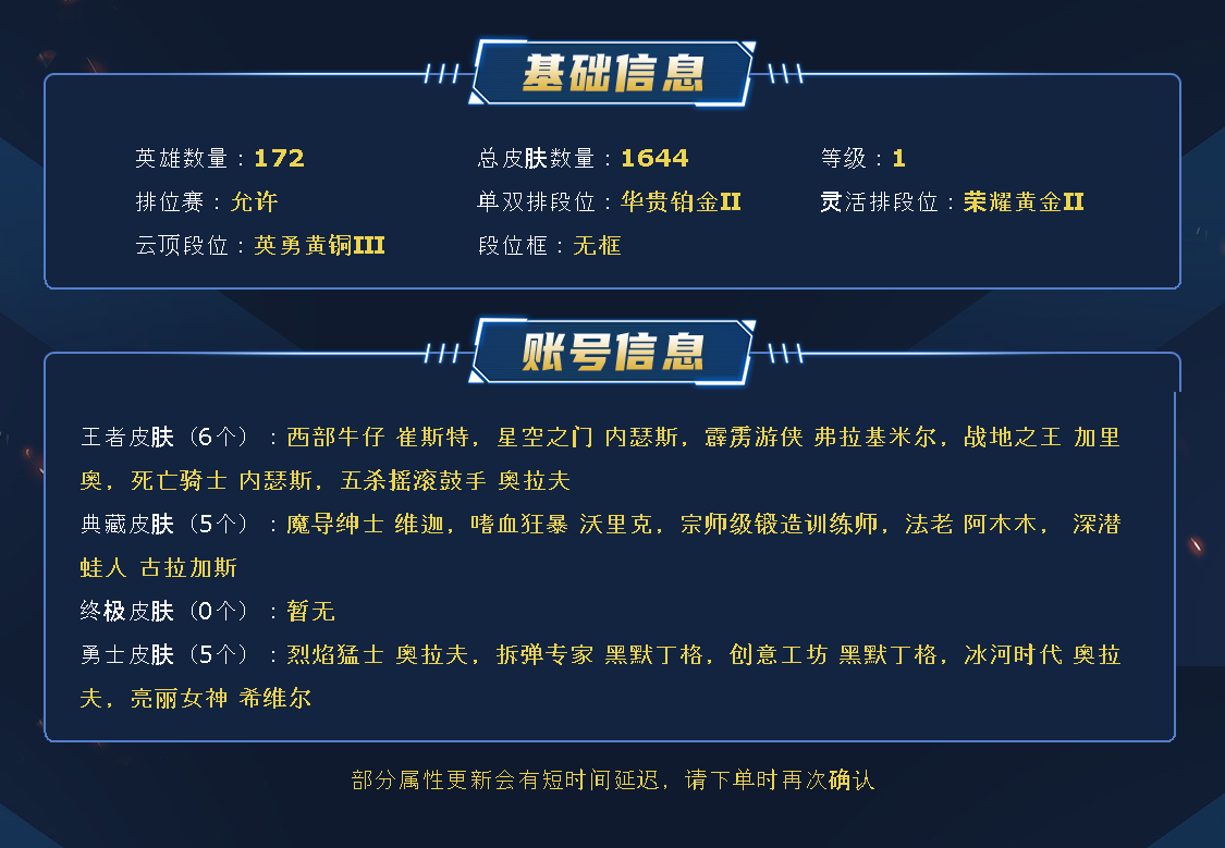 ~~喜欢记得收藏~~可排位~~1272皮全英雄丨853原皮419炫彩~~租之前尽量查一下游戏ID,确保段位是您需要的,避免浪费您的时间~~请勿挂机逃跑故意送人头,谢谢合作,谢谢~~