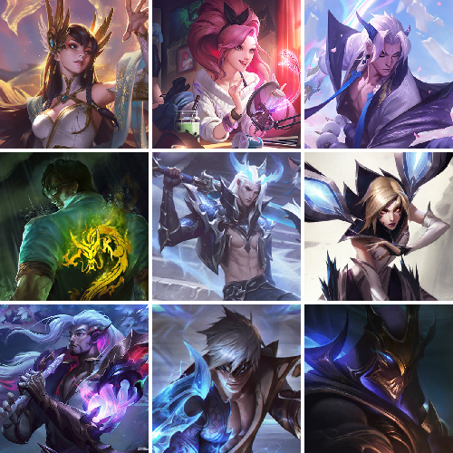 【重要皮肤】心之钢永恩至臻 DRX亚托克斯至臻 墨之影武者亚索至臻 花仙使者卡特琳娜至臻 绝息圣堂厄运小姐至臻 剪纸仙灵希维尔至臻 青花瓷丽桑卓至臻 至高天奎桑提至臻 海珀利安小队X09星环灵风迦娜至臻 星之守护者辛德拉至臻 星之守护者艾克至臻 海之歌萨勒芬妮至臻 西部魔影猎天使恶魔泰隆至臻 幻灵战斗猫金克丝至臻 青花瓷拉克丝至臻 神凰行者烈羽焰凰霞至臻 魅惑女巫莫甘娜至臻 女帝黛安娜至臻 战斗学院蕾欧娜至臻 魔女婕拉至臻 奥术师佐伊至臻 未来战士卢锡安至臻 真实伤害亚索至臻 真实伤害赛娜至臻 灵能特工伊泽瑞尔至臻 福牛守护者菲奥娜至臻 源计划逆流塞拉斯至臻 源计划阴劫至臻 王国机神玄武盖伦至臻 神龙尊者炎龙瑟提至臻 黑夜使者凯隐至臻 神龙尊者均衡之龙沃利贝尔至臻 飞升战神潘森至臻 KDA二代卡莎至臻 KDA一代卡莎至臻 KDA阿狸至臻 KDA伊芙琳至臻 KDA阿卡丽至臻 烈焰美人薇恩至臻 真实伤害奇亚娜至臻 玉剑传说武剑仙至臻 腥红之月亚托克斯至臻 灰烬骑士派克 灰烬杀手塞拉斯 海克斯科技雷克顿 海克斯科技克格莫 海克斯科技斯维因 海克斯科技吉格斯 海克斯科技波比 星之守护者塔莉垭 永恒之森奥恩 黎明使者卡尔玛 摄魂使者薇恩 胜利剑圣易 胜利女神娑娜 胜利之王泰达米尔 生化领主泰达米尔 养蜂人辛吉德 星之守护者伊泽瑞尔 玉剑传说舞剑仙 玉剑传说神机花火 玉剑传说无劫 玉剑传说舞龙卫 玉剑传说翼剑仙 黎明使者薇恩 龙的传人李青 银龙裁决泰隆 天龙之子斯莫德 剪纸仙灵艾瑞莉娅 猛虎下山赵信 你看见过我的熊猫吗安妮 紫金罗刹莫甘娜 广寒仙子嫦娥 司马懿仲达 烈焰美人薇恩 王国机神白虎贾克斯 王国机神玄武盖伦 福牛守护者安妮 福牛守护者厄斐琉斯 胜利女神瑟庄妮 胜利之树茂凯 胜利机器人布里茨 胜利枪神卢锡安 甜心宝贝娑娜 觅心之翼奎因 觅心萝莉金克丝 幽梦玫瑰辛德拉 水晶玫瑰婕拉 北极星神黛安娜 冬季仙境奥莉安娜 圣诞捣蛋鬼金克丝 圣诞老人德莱文 冰雪驯鹿波比 冰雪女神辛德拉 魄罗骑士瑟庄妮 平安夜女神娑娜 魅惑女巫乐芙兰 魅惑女巫厄运小姐 魅惑女巫莫甘娜 魅惑女巫伊莉丝 大魔法锅布里茨 大魔王提莫 死亡誓约卡特琳娜 死亡誓约劫 小恶魔菲兹 海之歌泽丽 泳池派对凯特琳 泳池派对佐伊 泳池派对普朗克 泳池派对奥莉安娜 泳池派对塔莉垭 泳池派对厄运小姐 泳池派对塔里克 泳池派对格雷福斯 泳池派对李青 泳池派对蕾欧娜 泳池派对雷克顿 泳池派对瑟提 电玩战魂赫卡里姆 克格汪 制胜金球拉莫斯 T1杰斯 T1金克丝 DRX亚托克斯 DRX千珏 DRX阿卡丽 DRX凯特琳 DRX艾希 DRX茂凯 EDG厄斐琉斯 EDG佛耶戈 EDG格雷福斯 EDG悠米 EDG佐伊 DWG崔斯特 DWG烬 DWG凯南 DWG蕾欧娜 DWG奈德丽 FPX薇恩 FPX李青 FPX普朗克 FPX墨菲特 iG卡蜜尔 iG洛 iG卡莎 iG艾瑞莉娅 iG乐芙兰 iG菲奥娜 SSG霞 SSG纳尔 SSG塔莉垭 SKTT1阿兹尔 SKTT1伊莉丝 SSW辛吉德 SKTT1贾克斯 Fnatic迦娜 Fnatic库奇 Fnatic古拉加斯 Fnatic嘉文四世 Fnatic卡尔萨斯 冰雪节格雷福斯 冰雪兽纳尔 防暴天使凯尔 冠军掠夺者卡兹克 冠军蔷薇乐芙兰 冠军之血希瓦娜 冠军之隐劫 警用试作体K9内瑟斯 女猎手希维尔 圣诞精灵崔丝塔娜 圣诞狂欢基兰 圣诞狂欢努努和威朗普 圣诞老人古拉加斯 圣诞驯鹿克格莫 喜庆之树茂凯 邪恶圣诞老人维迦 幸福女神乐芙兰 雪默丁格 雪装奈德丽 野兽猎人德莱文 英勇玩具兵普朗克 征服者诺提勒斯 征服者韦鲁斯 暗影沃里克 冠军之箭艾希 2023全球总决赛雷克顿 2022全球总决赛阿兹尔 2021全球总决赛嘉文四世 十五周年纪念希维尔 神凰行者瑞羽圣凰艾尼维亚 胜利凤凰艾尼维亚 斗魂觉醒佛耶戈 斗魂觉醒莎弥拉 灵魂守卫乌迪尔 KDAALLOUT萨勒芬妮独立音乐人 KDAALLOUT萨勒芬妮明日新星 KDAALLOUT萨勒芬妮超级巨星 绝息圣堂洛 星之守护者净化之羽霞