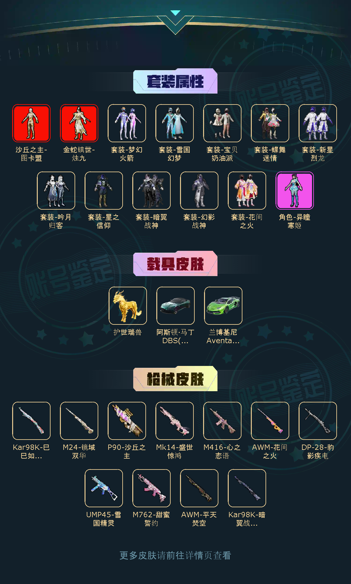 【稀有资产】金蛇镇世-烛九[1级]/沙丘之主-图卡盟[2级]/套装-雪国幻梦/套装-奇异狩猎者/套装-浪漫天命/套装-浪漫波比/角色-摩登魅猫