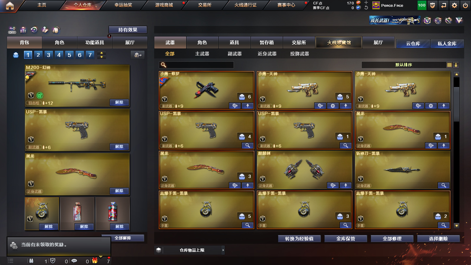 重庆一区-幻神巅峰荣耀-幻神AG冠军-白虎-双USP雷暴-雷暴套-斯泰尔蝴蝶-火麒麟横秒之巅-毁灭冠军之怒荣耀之怒-春