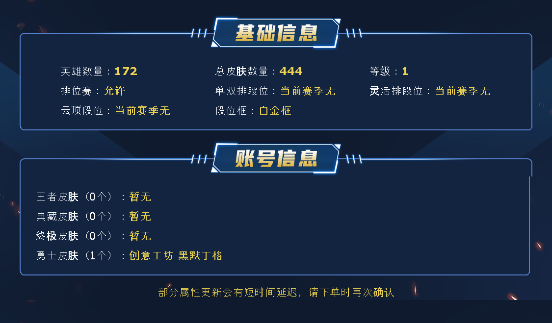 扭曲丛林172英雄,总皮肤429,原皮皮肤201炫彩皮肤228,神话11,臻彩7,金蛇巨星可以排位。
