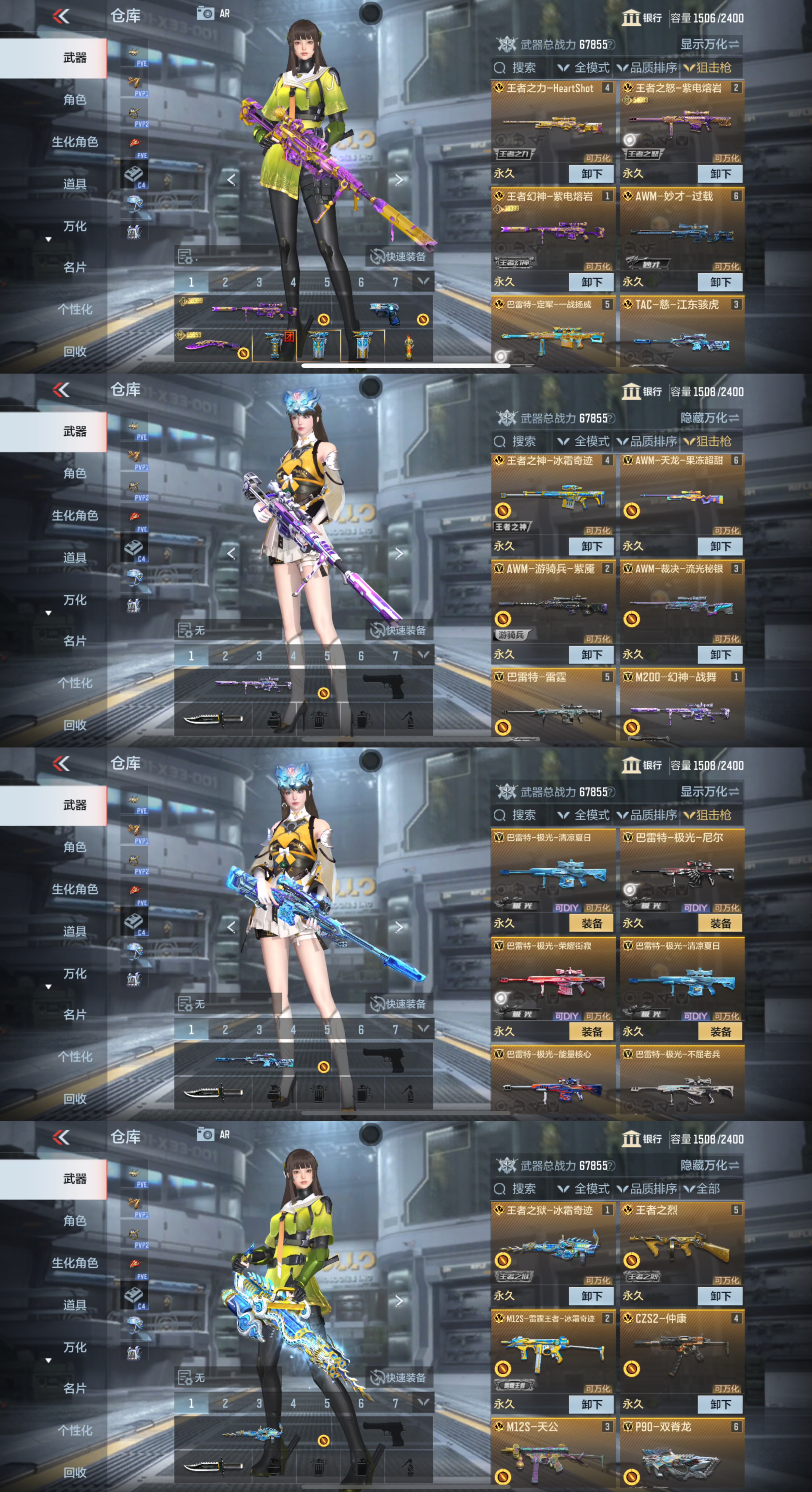 ❤️🔥狙击枪:紫电熔岩王怒至尊✨女团王力✨冰霜王者幻神至尊✨雷霆王者狙✨女团王光至尊✨秒才过载✨幻神战舞✨极光✨星神✨王掣✨太史慈 紫电王力 游骑兵awm