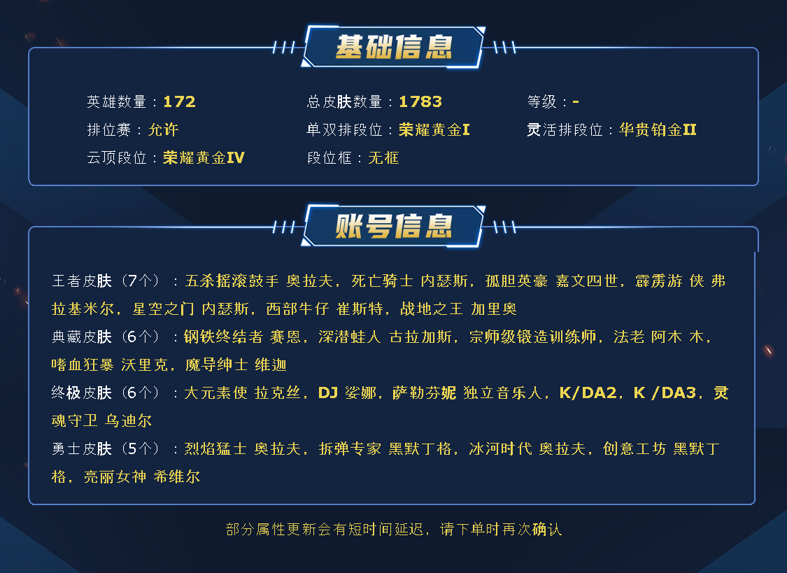 - 云顶段位: 荣耀黄金Ⅳ