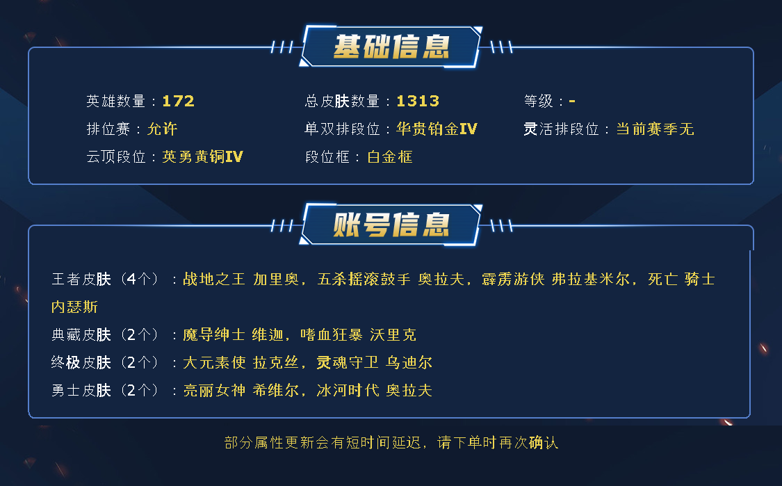 允许排位 -【德玛西亚】-1088皮 | 4幻想神话 | | 圣堂腕豪 | 龙瞎-4套冠军-1