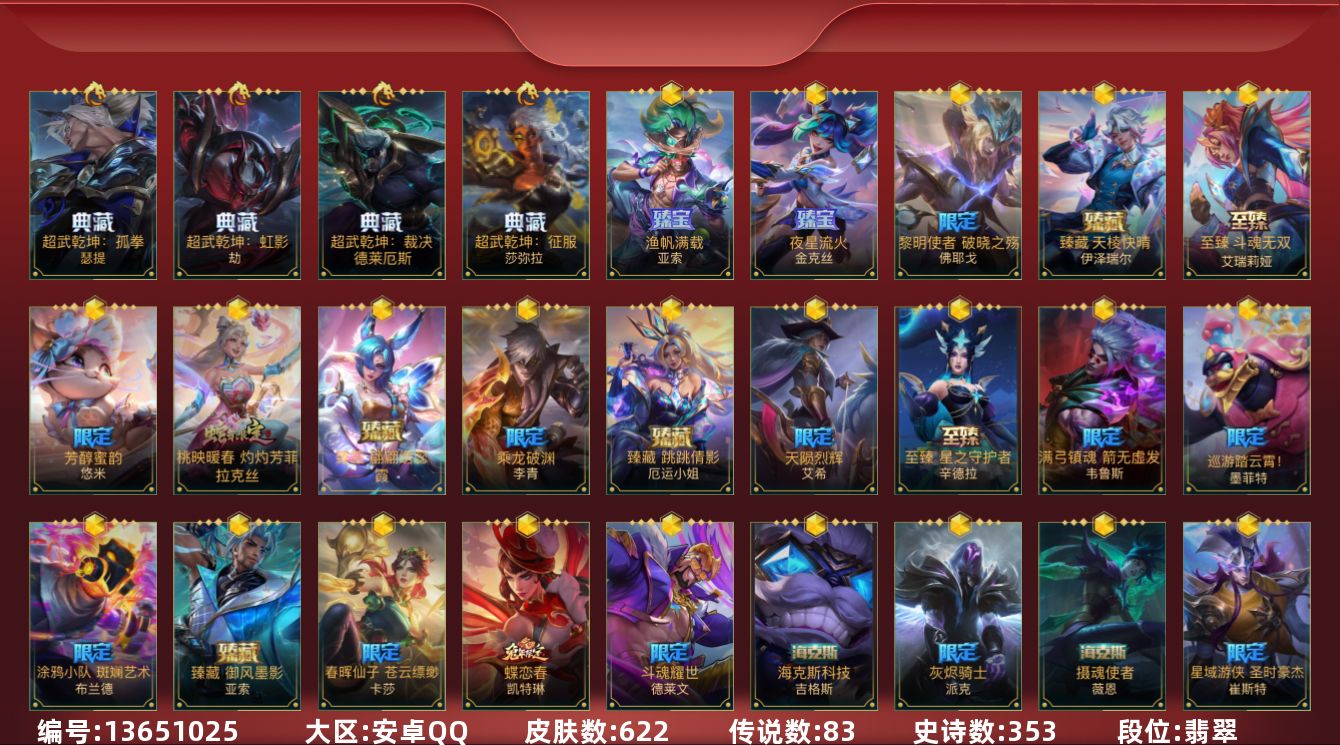 【安卓】 【允许排位】绝版时空探索粉色id皮肤622 4典藏/白龙回城圣龙归霄/31神话/82传说/351史诗