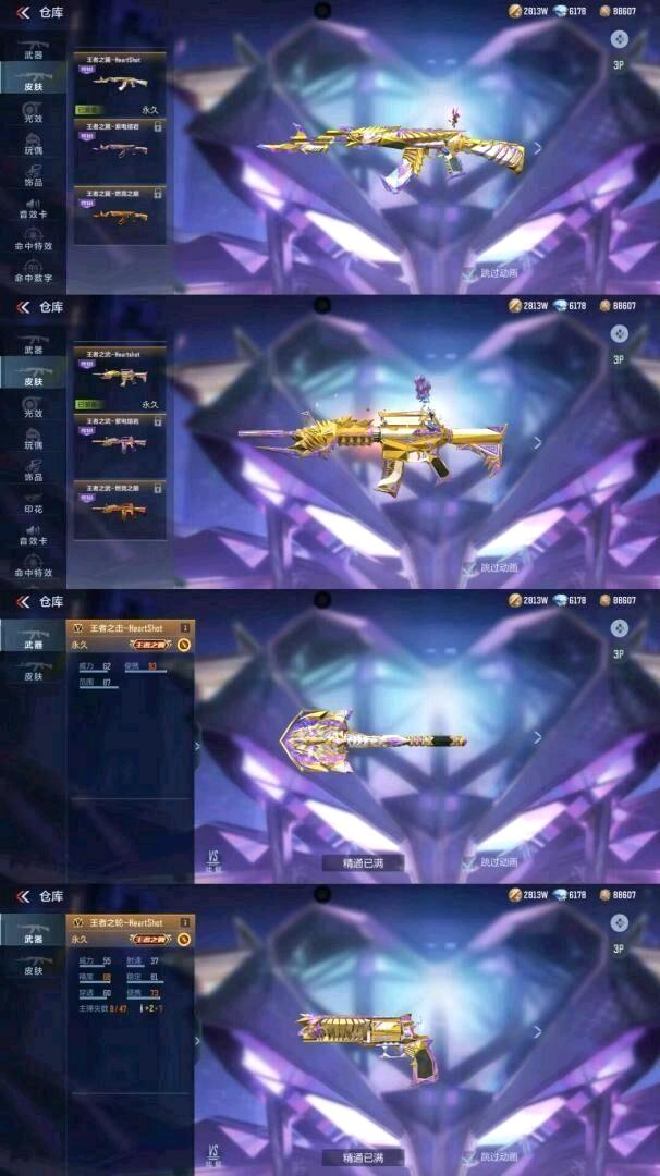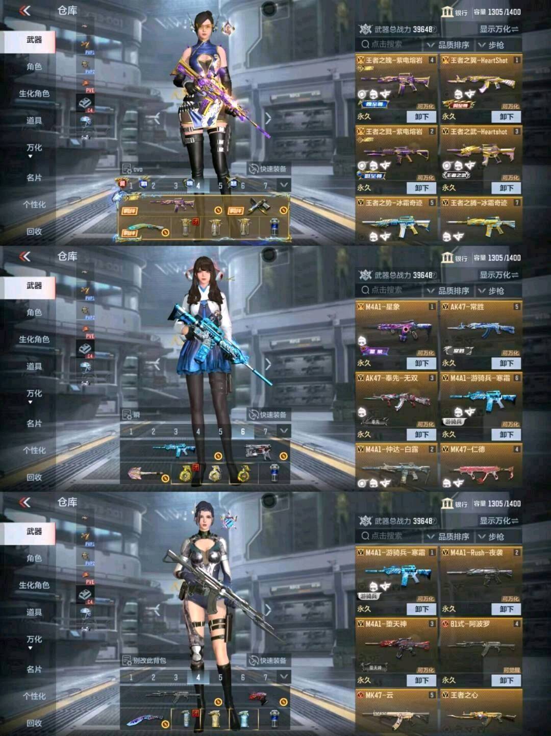 🔥主流步枪:❤🔥王者之魄-紫电熔岩❤🔥王者之魄-燃竞之巅❤🔥王者之怒-紫电熔岩❤🔥王者之怒-燃竞之巅❤🔥王者之怒-冠军LGD❤🔥王者之戳-紫电熔岩❤🔥王者之戳-拉丝❤🔥王者之戳-燃竞之巅❤🔥王者之影-冰霜奇迹❤🔥王者之势-冰霜奇迹❤🔥王者之翼-拉丝❤🔥王者之影❤🔥王者之武-拉丝❤🔥王者之腾❤🔥M4A1-星象璀璨❤🔥M4A1-仲达-白露❤🔥AK47-奉先-无双❤🔥AK47-常胜❤🔥MK47-仁德❤🔥M4A1-游骑兵-寒霜❤🔥M4A1-堕天使❤🔥81式-阿波罗❤🔥MK47-云❤🔥SKS-美杜莎❤🔥其他的还有很多就不写了