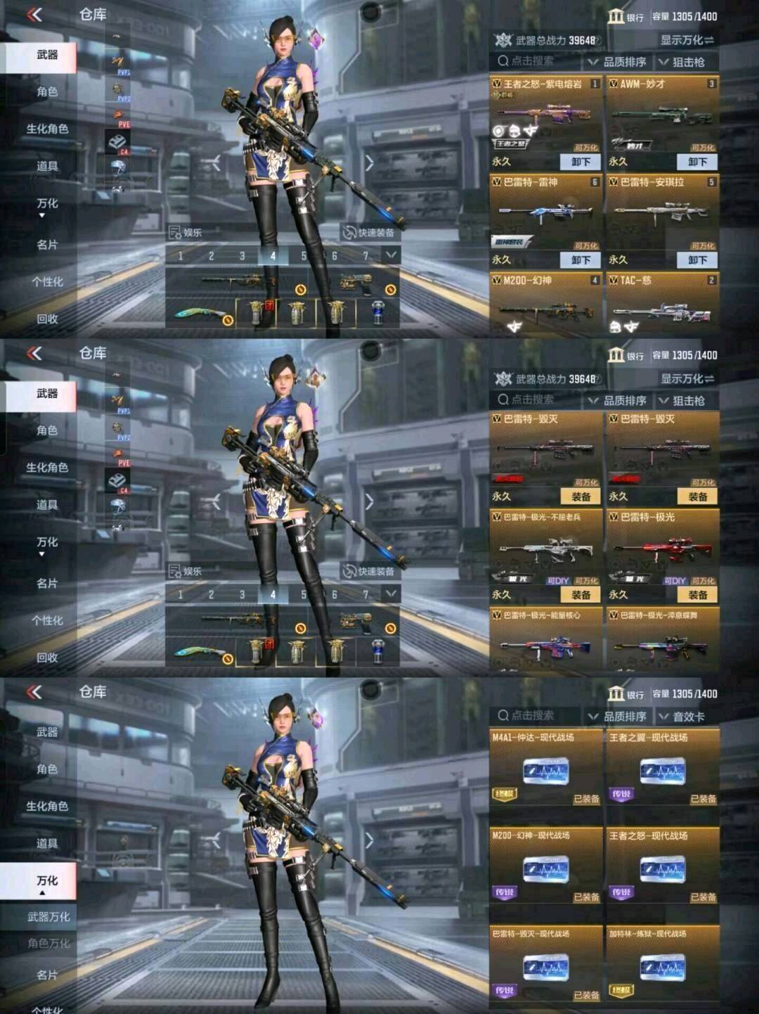 🔥狙击枪:❤🔥王者之怒-紫电熔岩❤🔥M200-幻神❤🔥TAC-慈2把❤🔥AWM-妙才❤🔥巴雷特15把❤🔥等省略