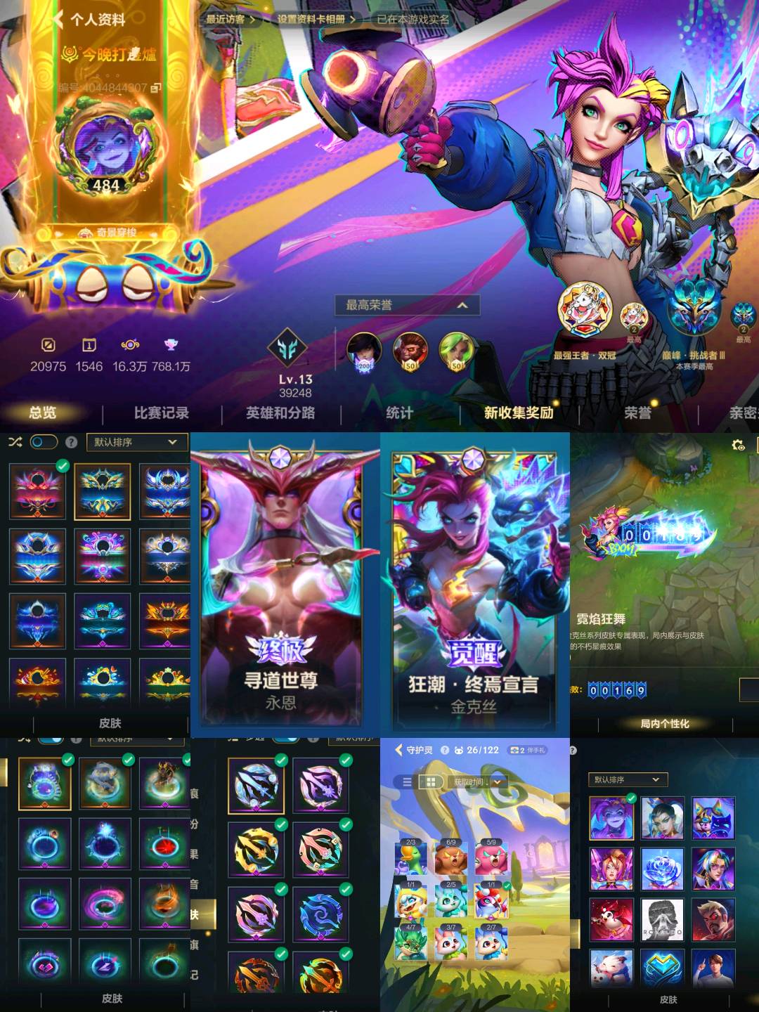 【安卓】 【允许排位】重氪账号 ,780皮肤 , 金克斯终焉,永恩寻道世尊 ,橙名,8臻藏,60多神话 ,各种系