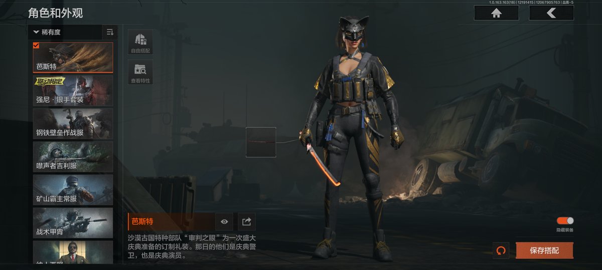【安卓】 13刀1橙皮6金皮10金枪2手套,芭斯特,强尼银手套装,钢铁壁垒作战服,噤声者吉利服,矿山霸主常服,