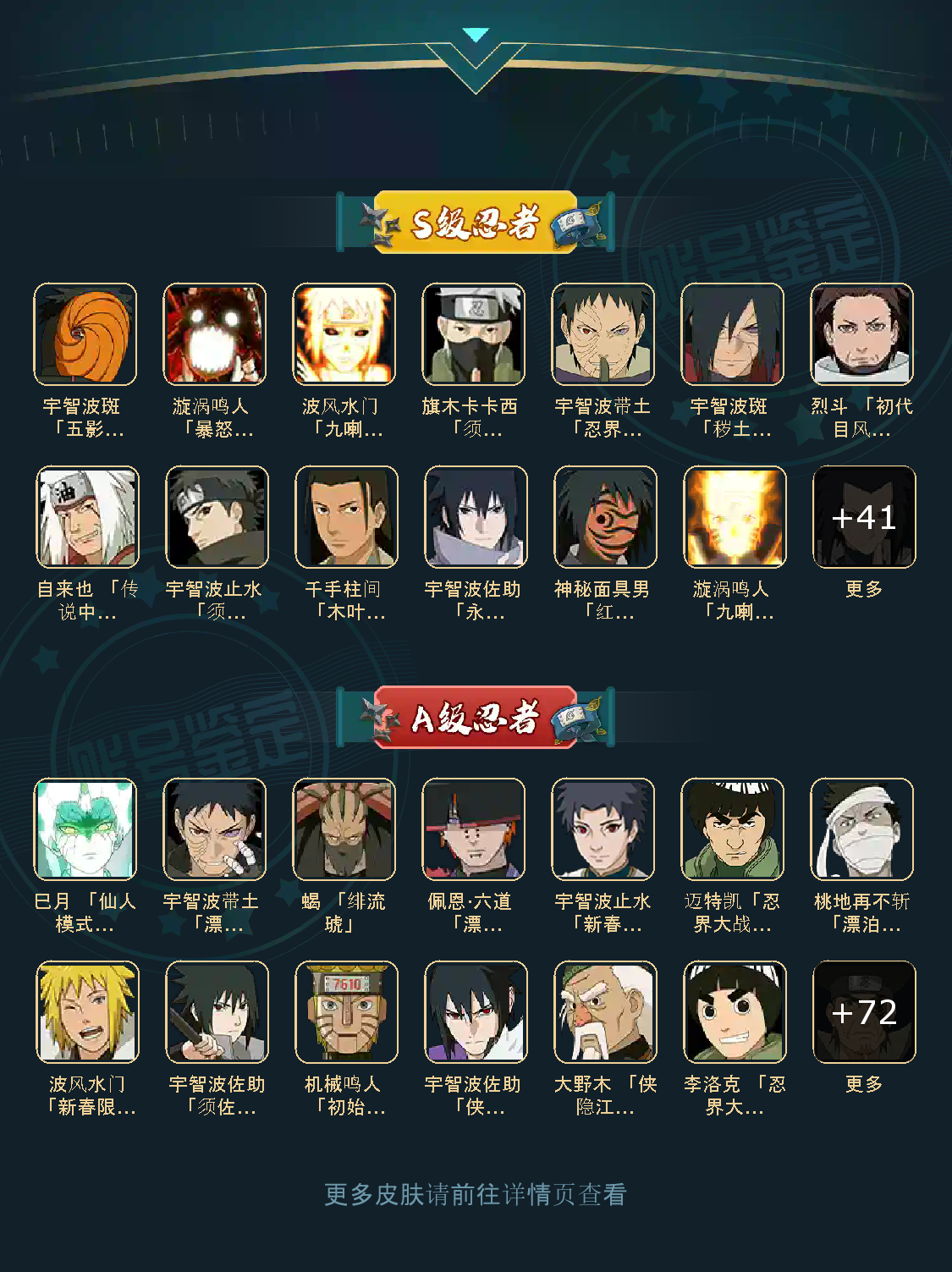 50S 96A 392忍者巳月「仙人模式」波风水门「九喇嘛连结」宇智波斑「五影会谈」机械鸣人「初始形态」宇智波佐助「侠隐江湖」大野木「侠隐江湖」最终章场景 雨忍村场景 全通灵