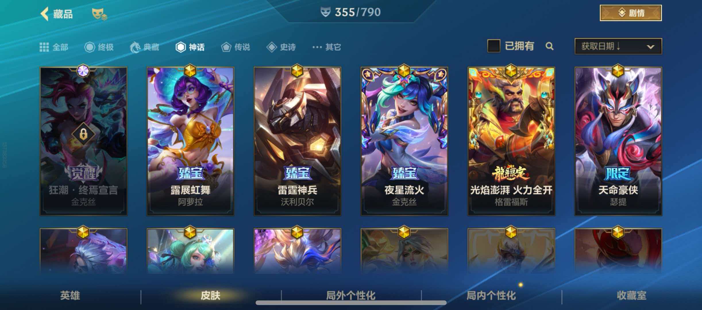 360皮肤❤4典藏❤9神话❤超武乾坤 诺手 瑟提 劫 莎弥拉❤龙限男枪❤至臻赵信 格温❤满弓镇魂韦鲁