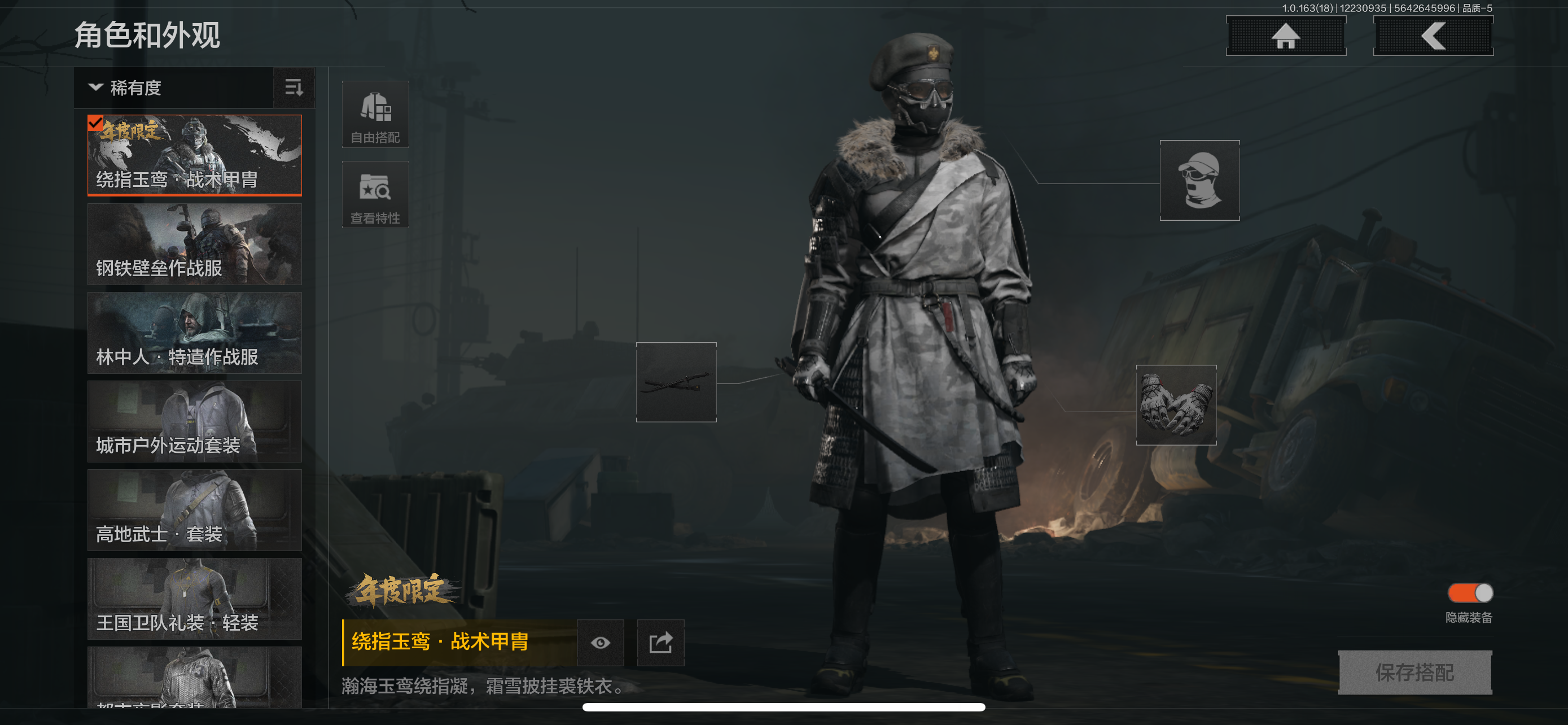 【苹果】 1.7W氪金,6刀3金皮9皮肤2手套9金枪,绕指玉鸾战术甲胄,钢铁壁垒作战服,林中人特遣作战服,三尺