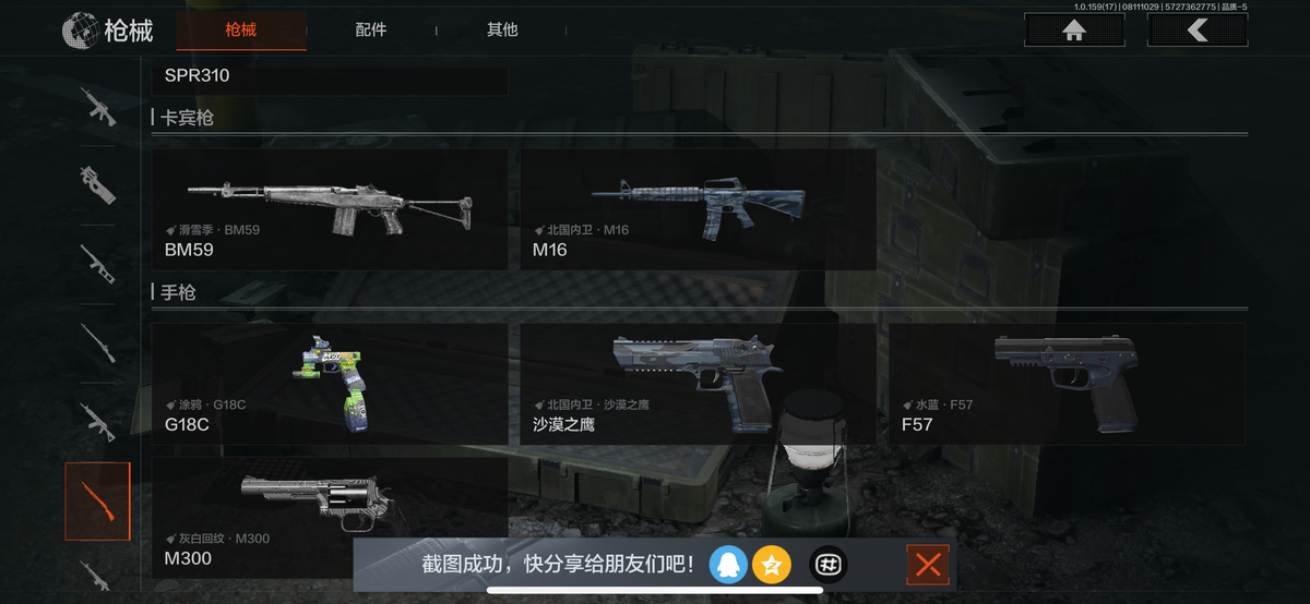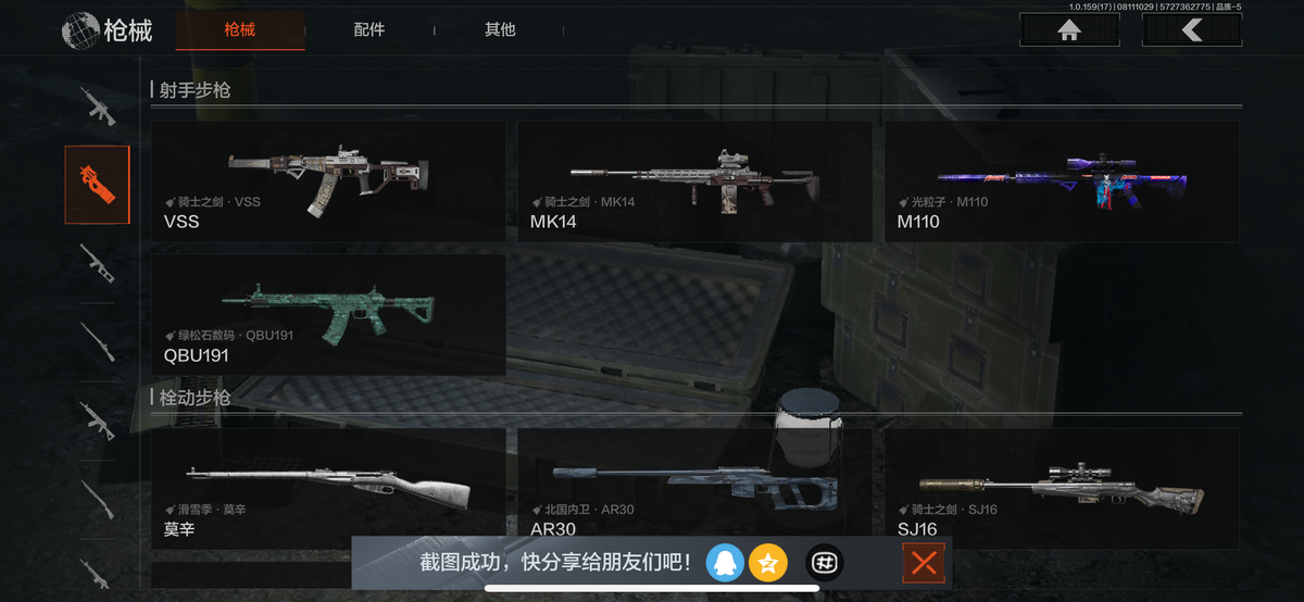 30级,历史最高段位:暗区传说【近战武器】:瀚星斩铁,涂鸦利刃,胜利军刀,龙魂双节棍,工兵铲,来战开山刀;【角色皮肤】:龙魂武术服,都市夜影套装,台风IV竞技运动服,边境看守;【突击步枪】:火力倾泻AKM,缟兵玄墨AKM,来战AKM,德尔塔小队M4A1,巅峰M4A1,诸星之子FAL,真实之眼FAL,蓝色咆哮H416,堕落者H416,自喷网格H416,德尔塔小队H416,北国内卫MDR,涂鸦AK102,来战AK74N,坚守AKS74U,火绒草AUG,极恶AUG,炎夏浪花AR57,涂绘猎人AR57,电动工具AR57,骑士之剑ACE31,湖冰倒影ACE31,胜利AEK,北国内卫AN94,阴影AN94,盛冬AN94,百锻寒芒T951,森林迷彩T951,北国内卫AK12,07式林地迷彩QBZ191;【冲锋枪】:火力倾泻MP5,掌中盾MP5,玄戈梨花MPX,涂鸦MPX,灰鼠幻歌P90,冬日精灵P90,滑雪季UMP45,禁止访问UMP45,自喷网格UMP45,北国内卫MAC10,镀铬寒铁T79,沙色Vector45,北国内卫Vector45,都市黄Vector9,滑雪季Suomi;【射手步枪】:骑士之剑VSS,炎夏浪花队VSS,飞鲨VSS,骑士之剑MK14,光粒子M110,全地形数码M110,绿松石数码QBU191;【栓动步枪】滑雪季莫辛,北国内卫AR30,骑士之剑码SJ16,滑雪季M24,数码猎人M24;【轻机枪】:北国内卫RPO;【霰弹枪】:北国内卫MP133,危险猎手MP133,胜利锋刃S12K,营房暖冬USAS12,雪地数码USAS12,真实之眼SPR310,现代化SPR310;【卡宾枪】:滑雪季BM59,北国内卫M16;【手枪】:过江龙G18C,涂鸦G18C,午夜梦魇G18C,北国内卫沙漠之鹰,滑雪季F57,水蓝F57手枪,灰白回纹M300;