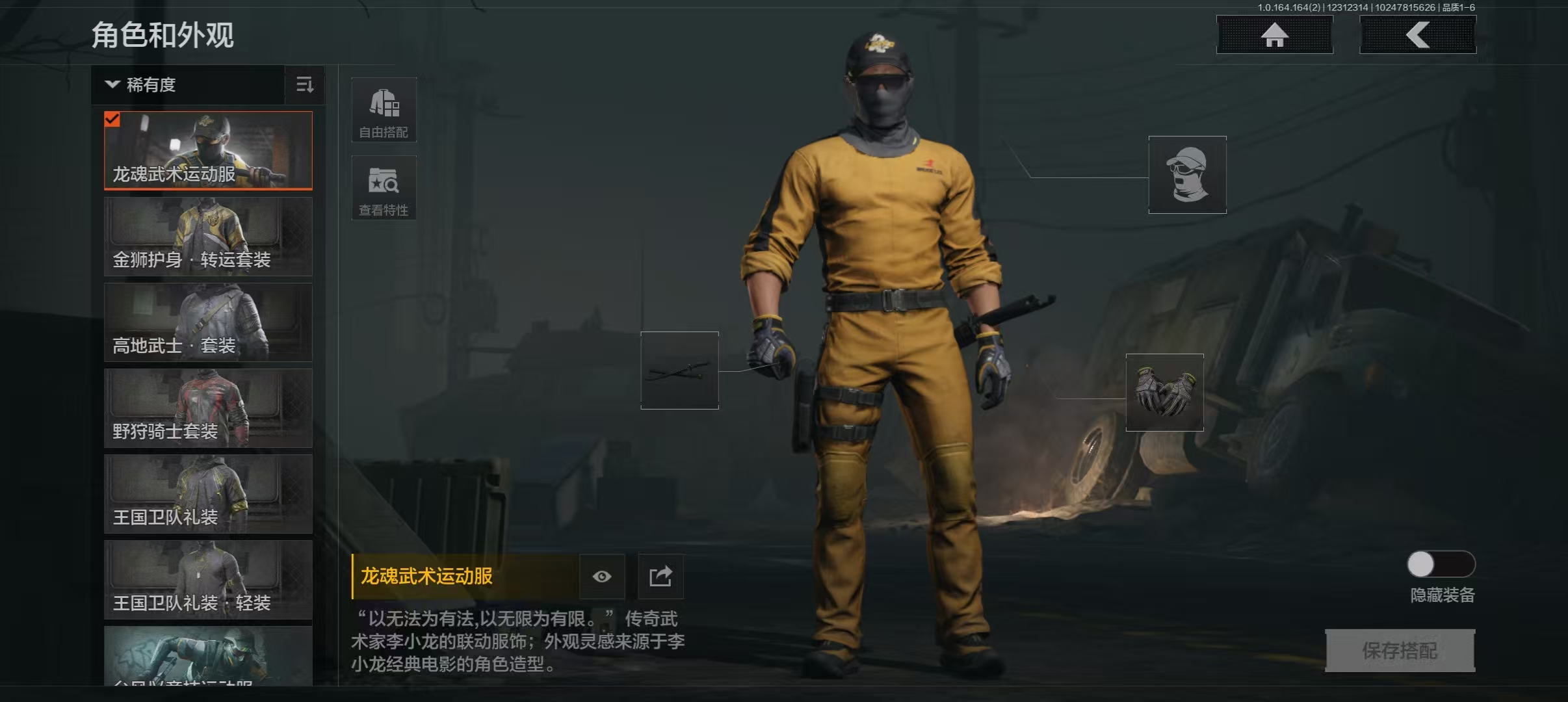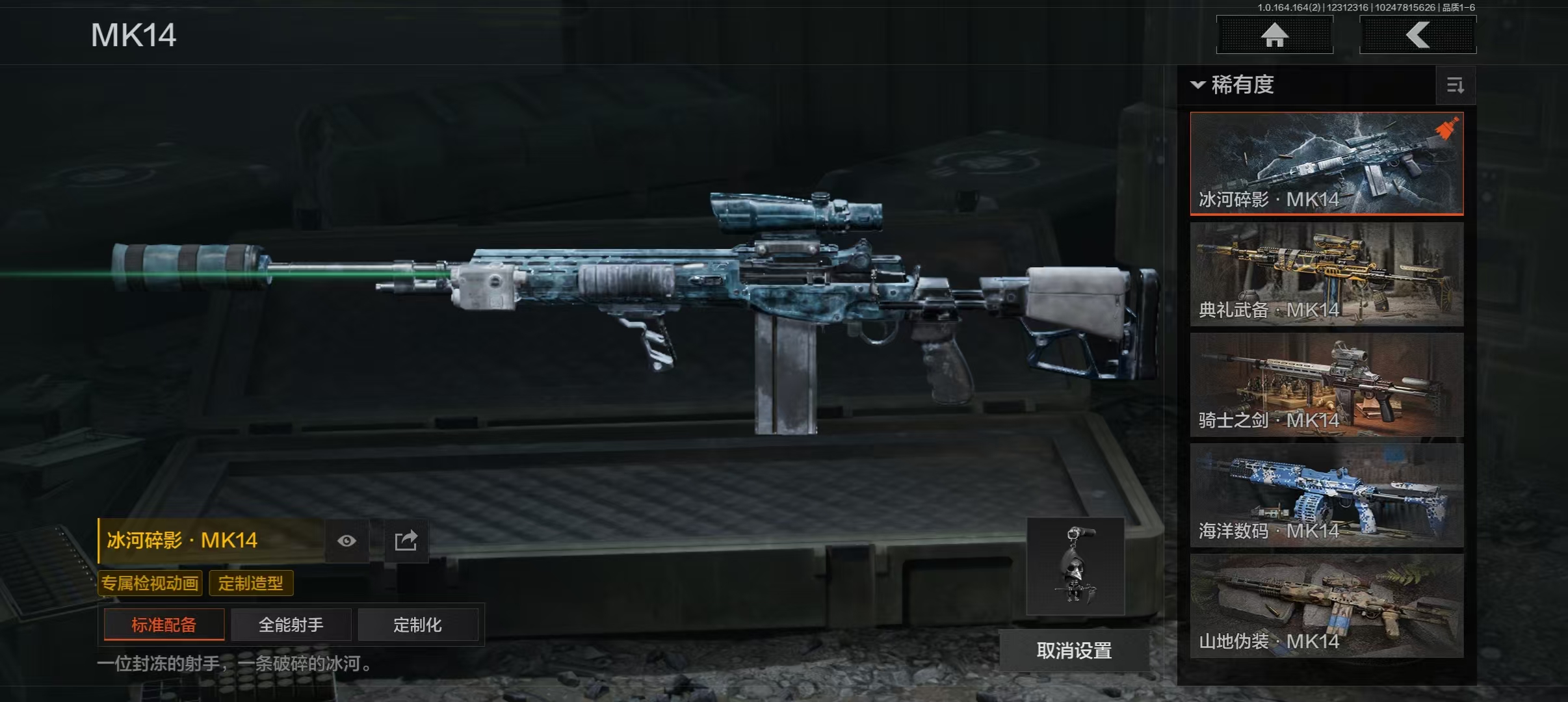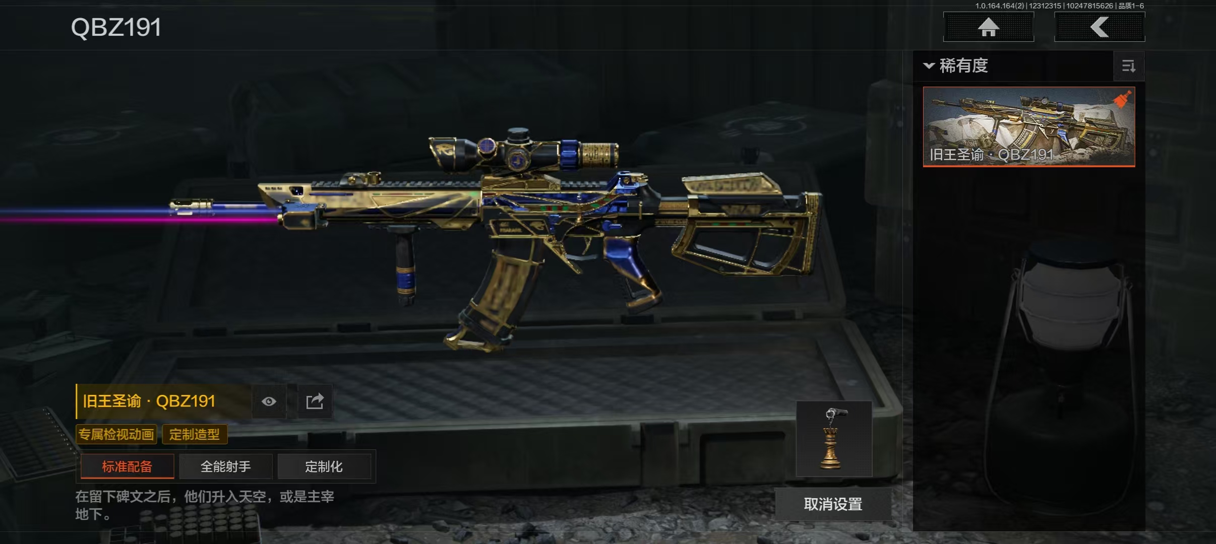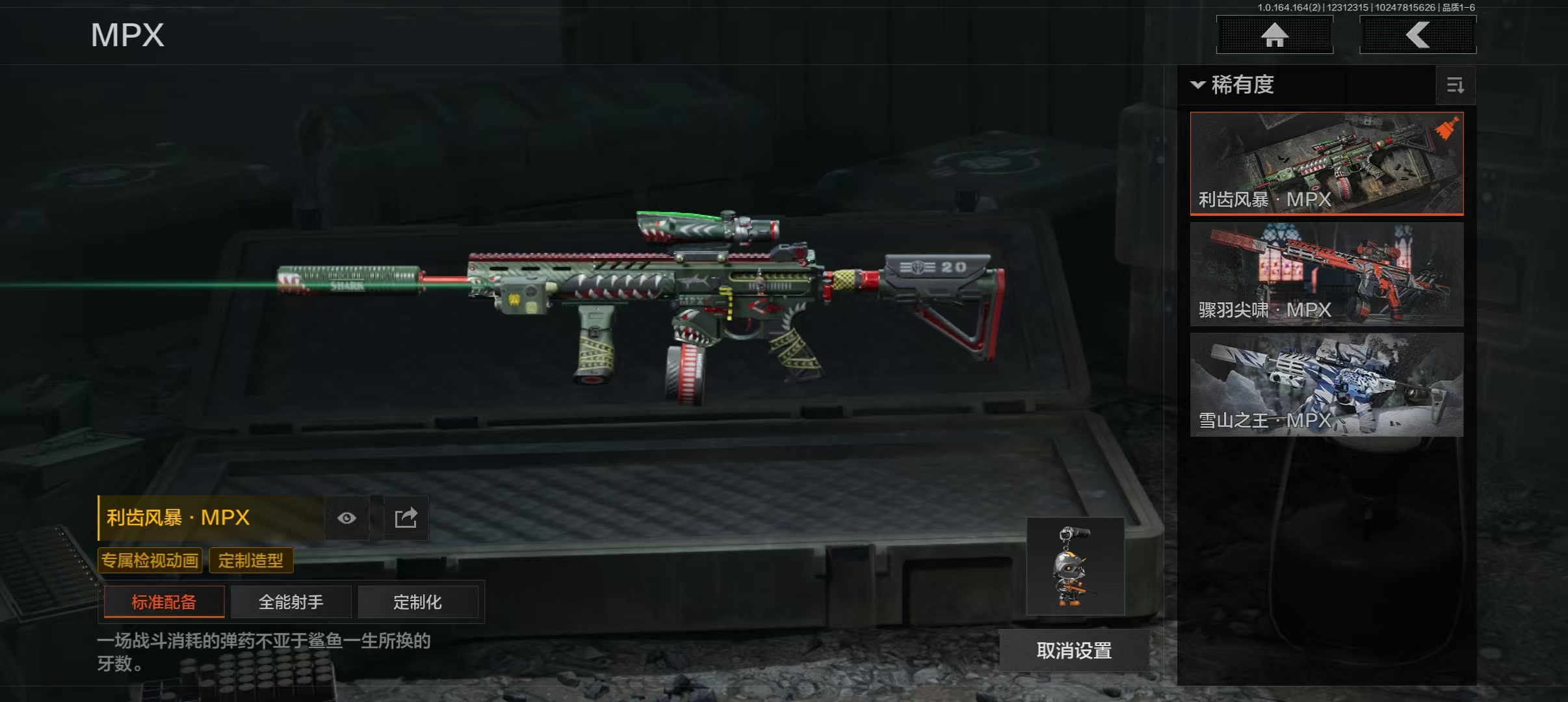 30级,刀皮16,金枪皮5,紫枪皮53,历史最高段位:暗区传说,【角色皮肤】:龙魂武术运动服,台风IV竞技运动服;【近战武器】:苍穹利爪,收割者,S-07折刀,赢家匕首,热能武器补牢,寒牙手刺,明刀绣春,龙魂双节棍,冬日冰镐,裁决手杖剑,急袭弯刀,霜狼生存刀,精英指虎,野战折刀,冰海战斧,突击匕首;【手套】:急袭手套;【突击步枪】:伦琴幻影FAL,告丧夜曲AUG,旧王圣谕QBZ191,幻域莎绫M4A1,德尔塔小队M4A1,黑金国际M4A1,自喷网格H416,北国内卫MDR,竞技AUG,战术大师AK74N,来战AK74N,山地伪装AK74N,骑士之剑AKS74U,逆火玄石F2000,赢家F2000,雪山之王F2000,炎夏浪花AR57,涂绘猎人AR57,湖冰倒影ACE31,粉绒臻选AN94,伦琴计量AN94,北国内卫AN94,壁垒AN94,骑士之剑Groza,伦琴计量SCAR,伦琴计量T951,利齿风暴T03,典礼武备MCX;【冲锋枪】:利齿风暴MPX,湖冰倒影MP5,龙威MP5,骤羽尖啸MPX,雪山之王MPX,高塔之内P90,利齿风暴T79,超越自我Vector9,恶念Vector9,战术大师Suomi;【射手步枪】:冰河碎影MK14,高塔之内VSS,白狼连队VSS,战术大师SVDS,典礼武备MK14,骑士之剑MK14,全地形数码M110,鱼跃丹青QBU191;【栓动步枪】:粉绒臻选AR30,超越自我AR30,战术大师SJ16,武侍SJ16,护命金翎M24;【轻机枪】:典礼武备M249;【霰弹枪】:盛冬S12K;【卡宾枪】:战术大师SKS;【手枪】:赢家G18C,涂鸦G18C,秩序G18C,白貂F57