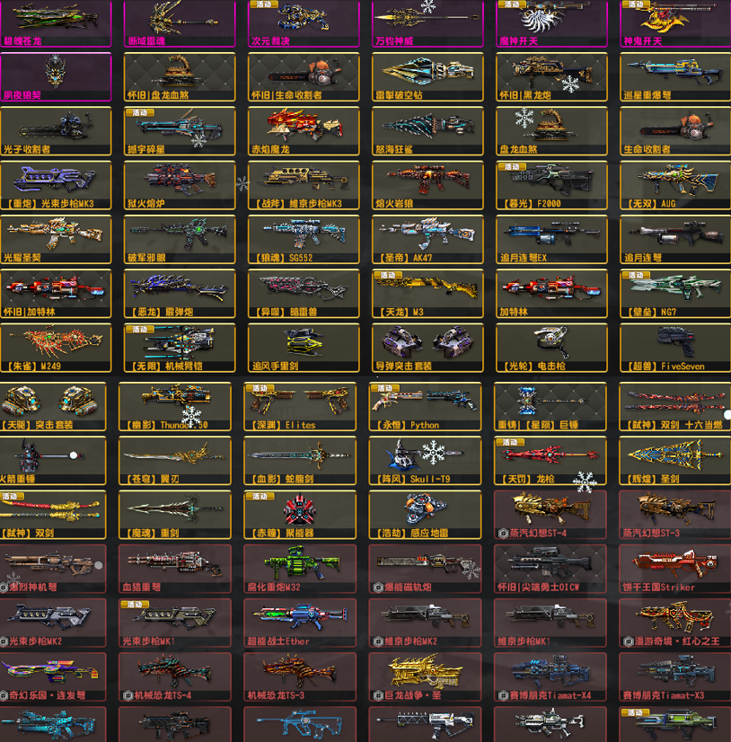 龙神次元裁决万钧神威夙夜狼契四件套魔神●次全赛季●光束套维京套闪电MG36机枪●重铸怀旧套去雾
