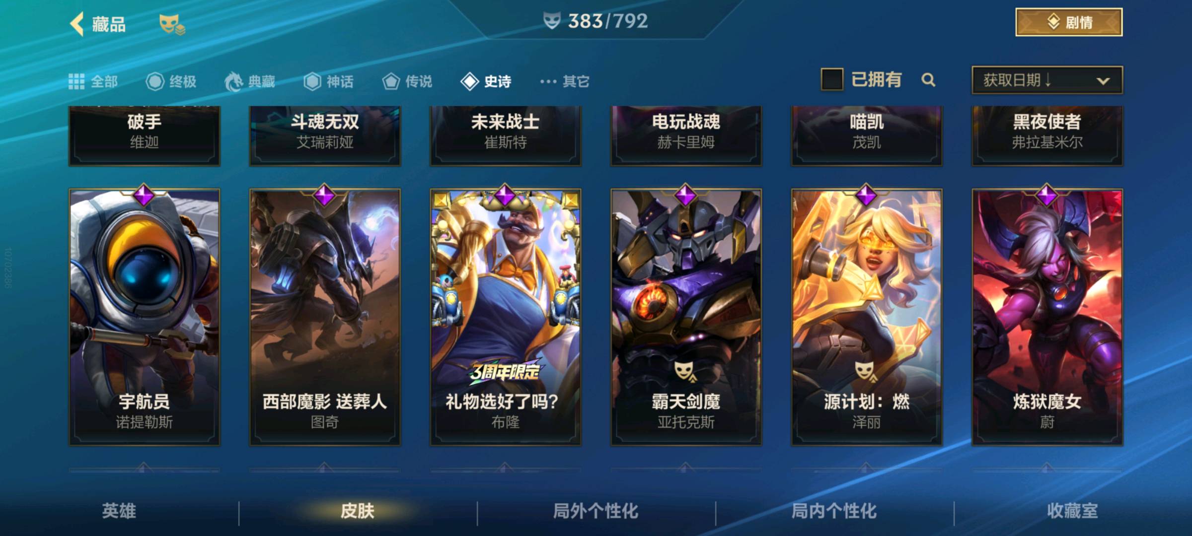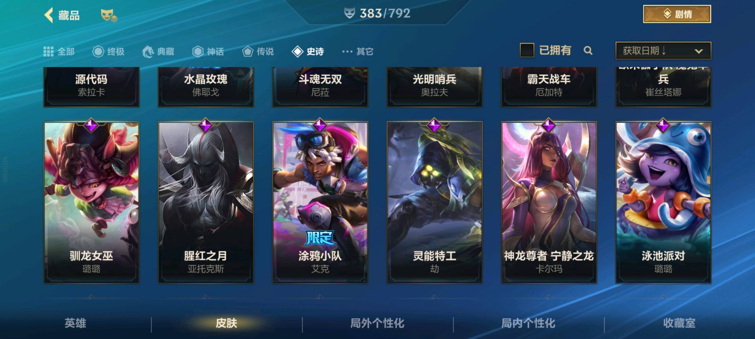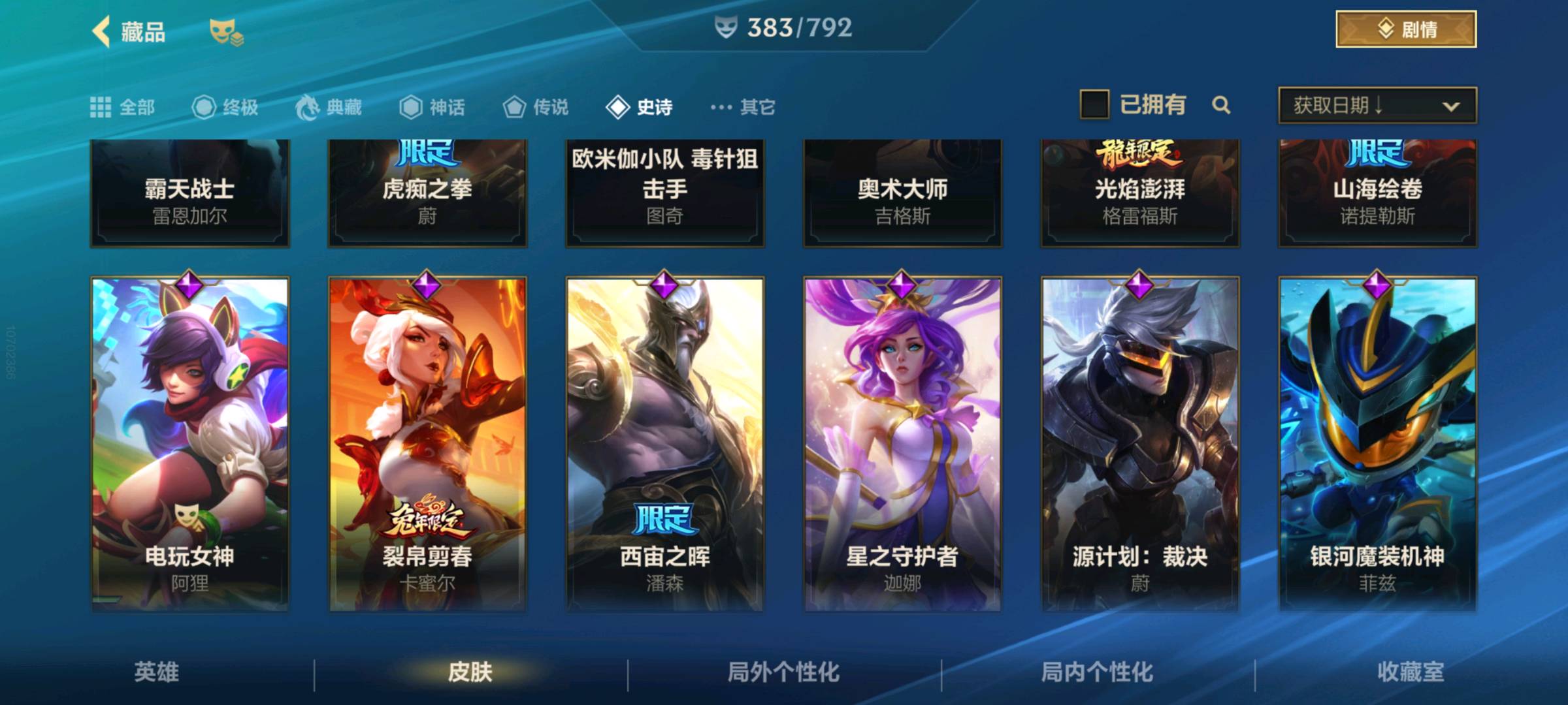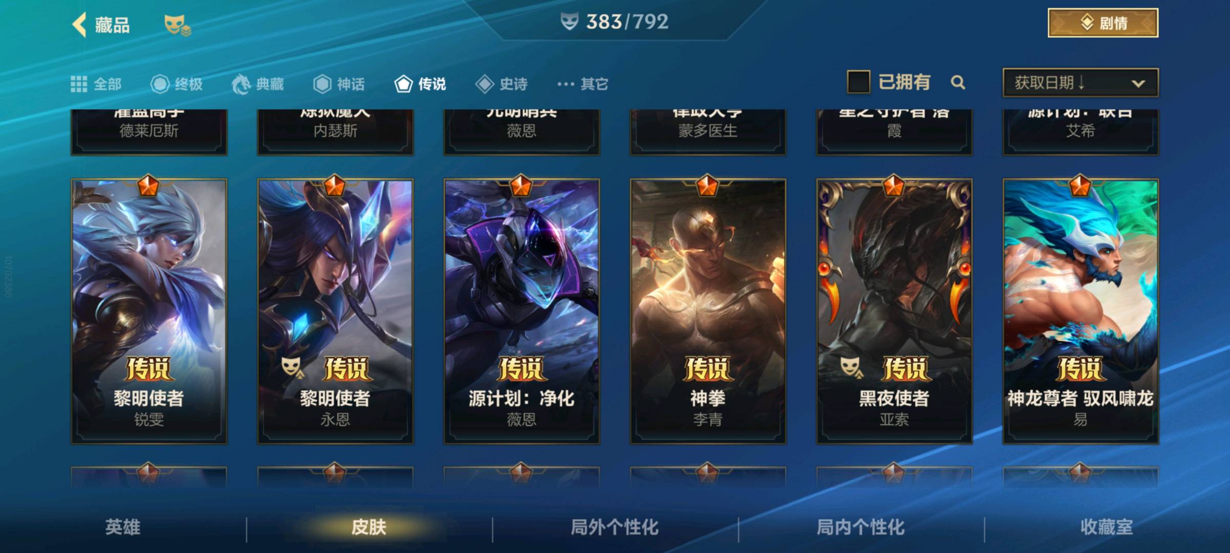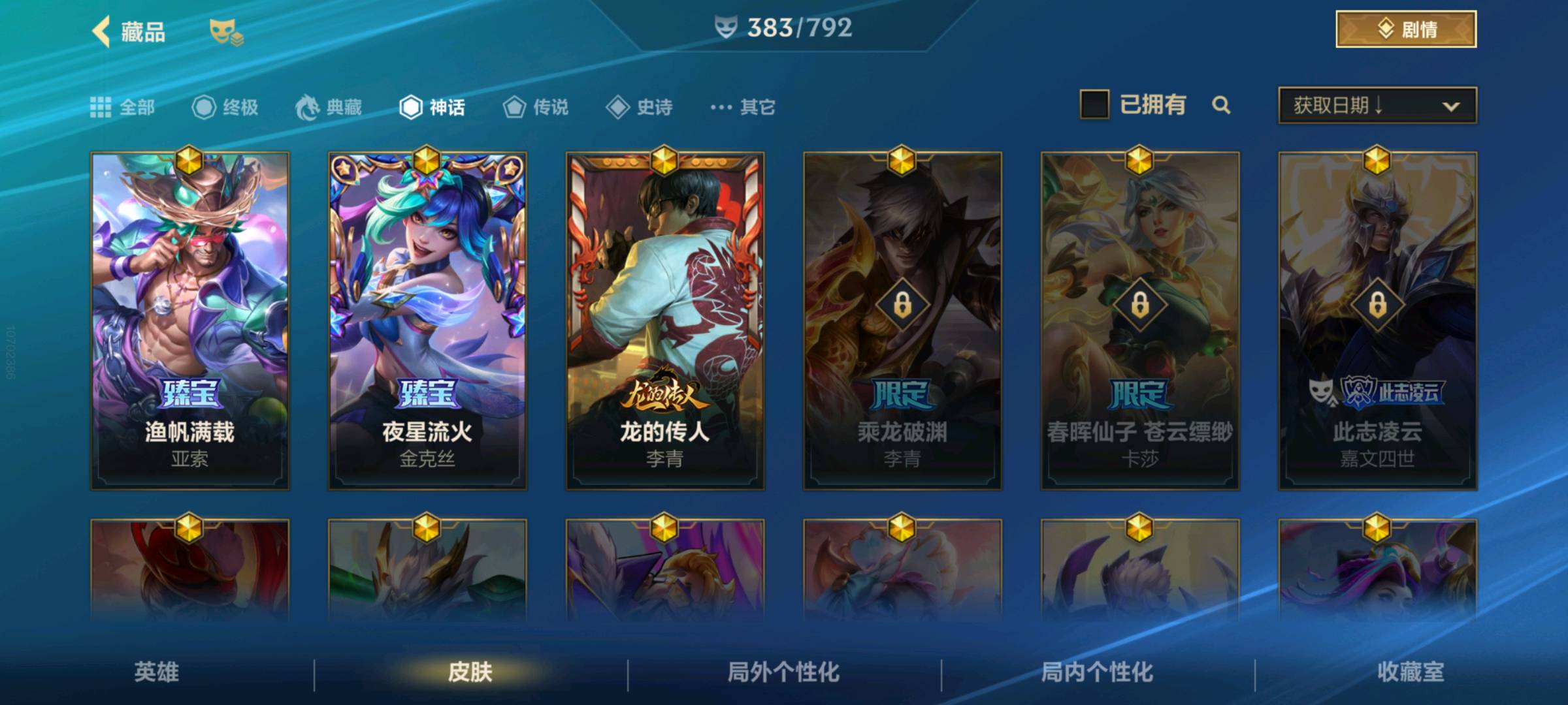 【安卓】 【允许排位】383皮肤/3神话/36传说/191级