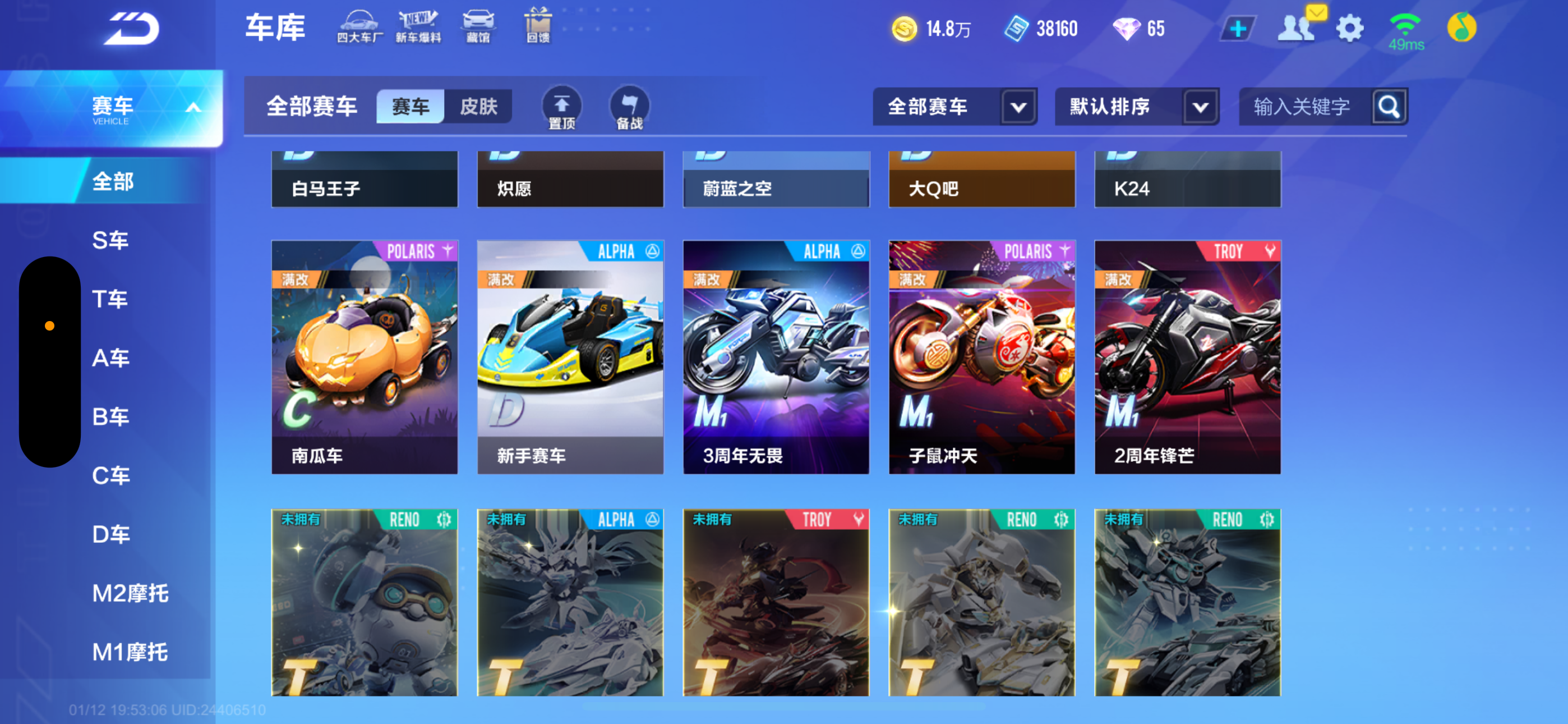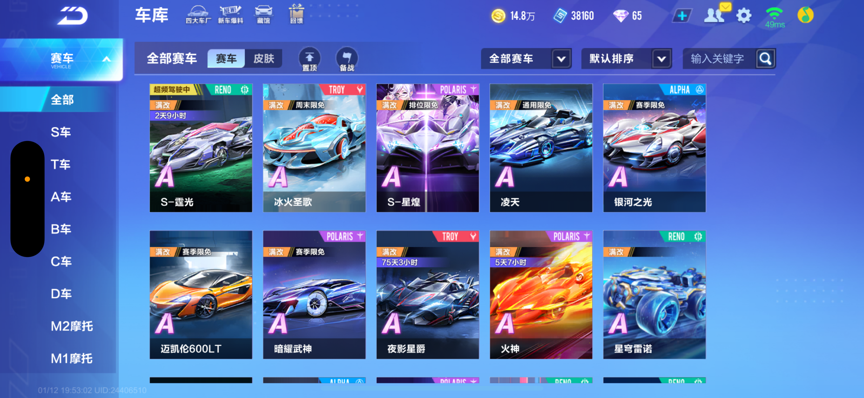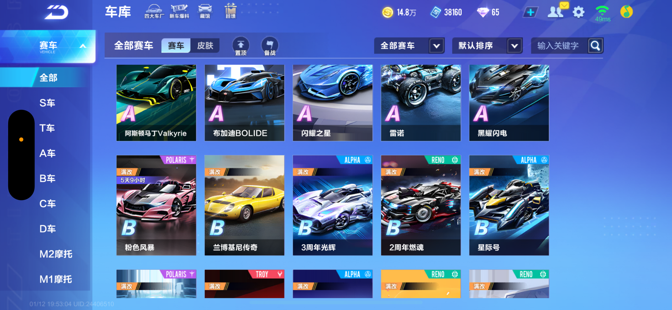 【苹果】 V6 A车15❤️全部满改❤️最强车神❤️衣服服饰❤️星穹雷诺❤️霆光❤️阿斯顿马丁❤️布加迪❤️